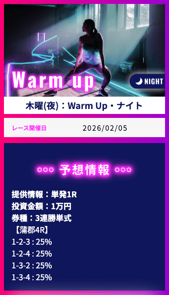 そういった情報網から得られる「注目するべきレース」の情報をLINE公式アカウント登録者限定で配信する用意があります。