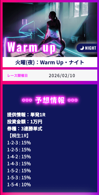 | 桐生 | 2/3 | 66.7% | +20,450円 |