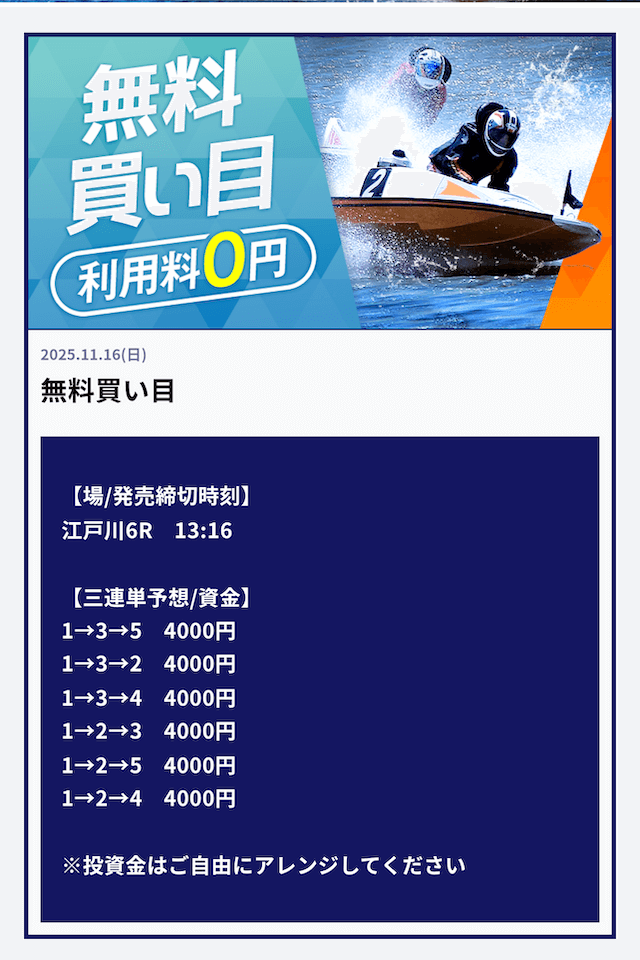 競艇場ごとの特性を考慮した予想だと感じます。特に水面が荒れやすい場所での的中率が高い気がします。