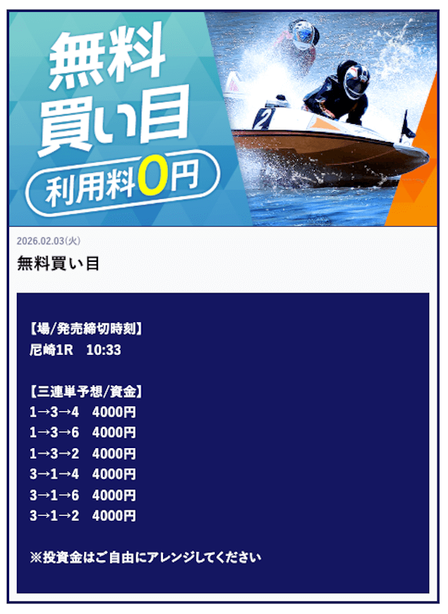 ボートキングの無料予想の感想