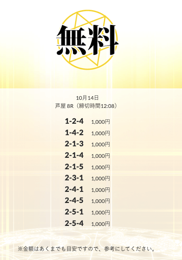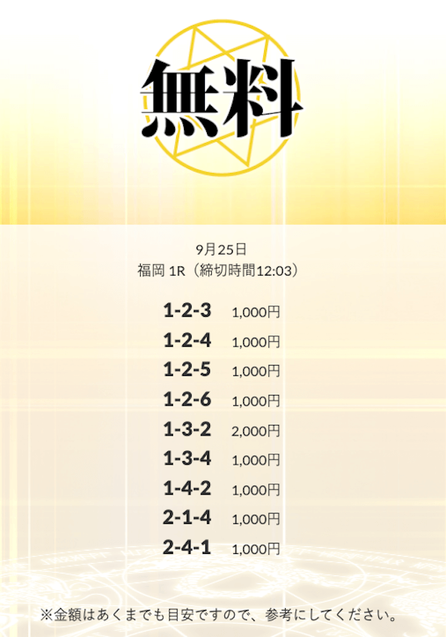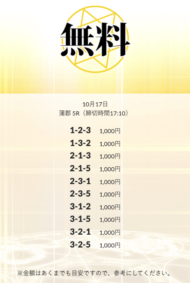 無料予想はあまり高配当狙ってる感じでも無くて少し物足りなくお試しプランを購入