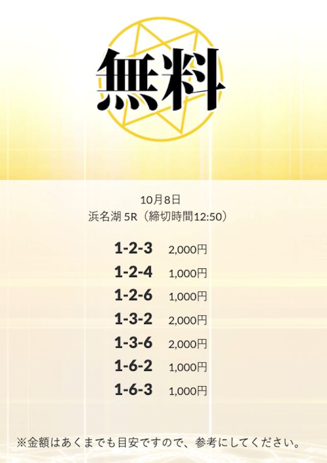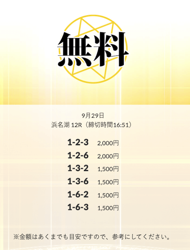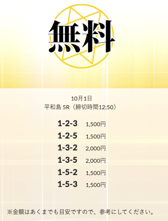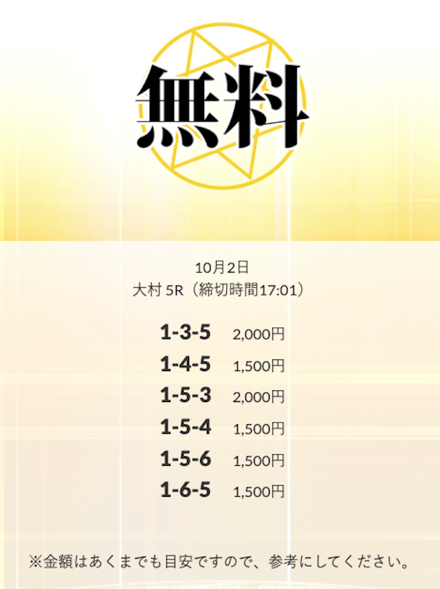 口コミの評価をみて私も皇艇に登録して無料予想を試してみました。