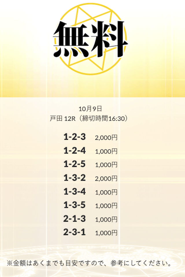 私もそれから1ヶ月間、計12回の無料予想に参加したところ、戦績は10勝2敗。