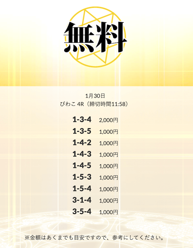 【1/30 びわこ4R 】 無料予想 +49,800円 |