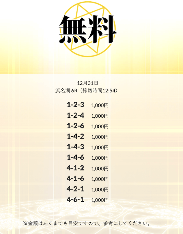 | 12月31日浜名湖06R | 4-6-1 | 10,000円 | 28,300円 | 283% | |