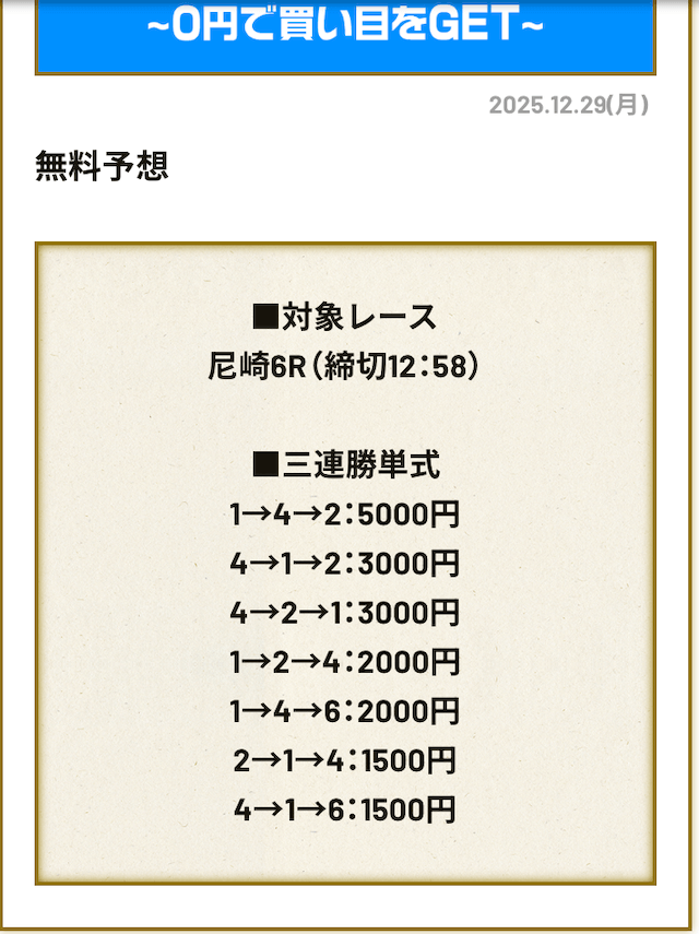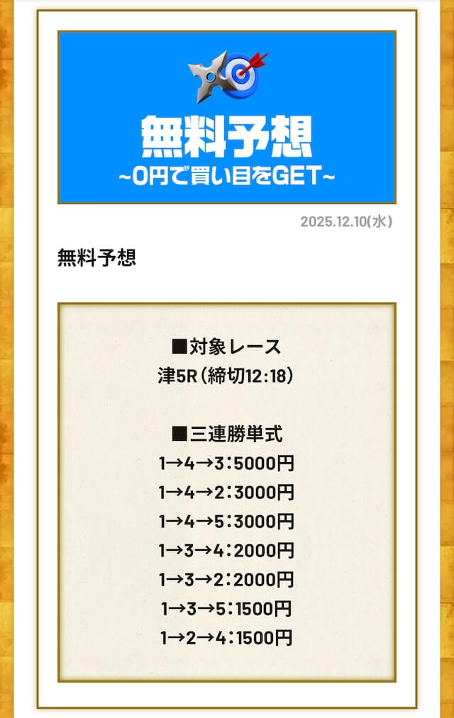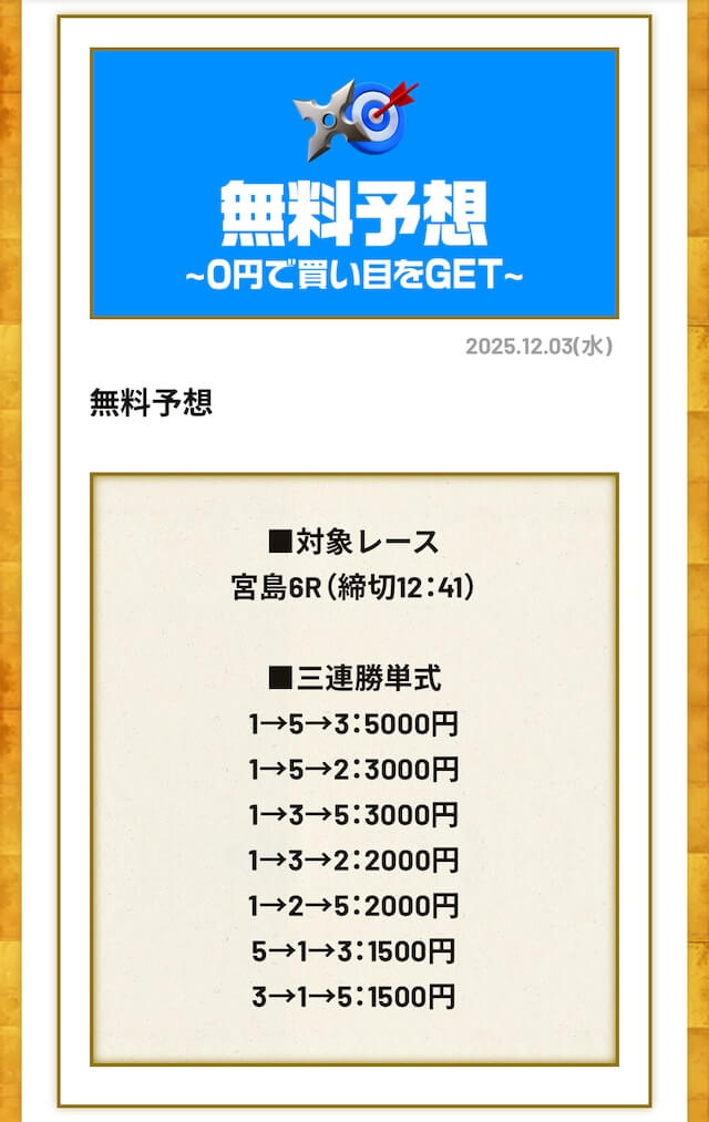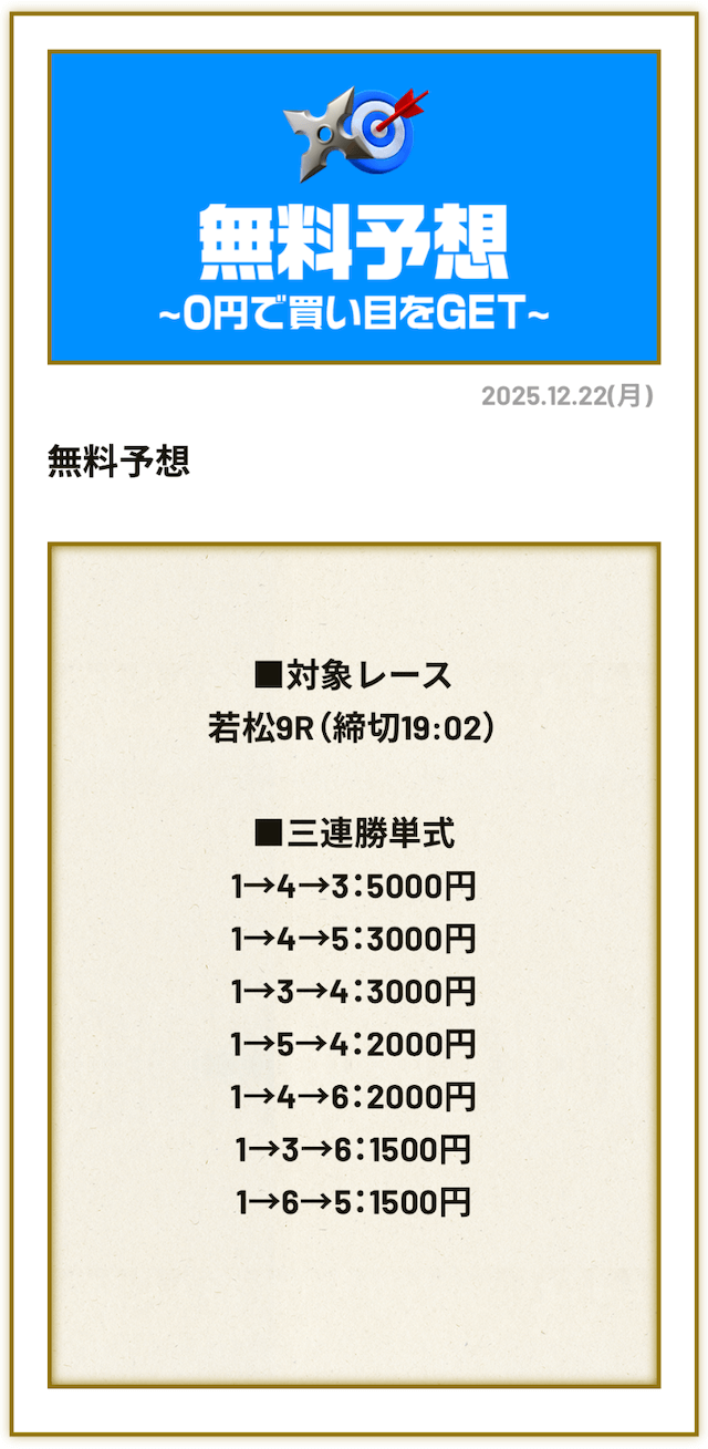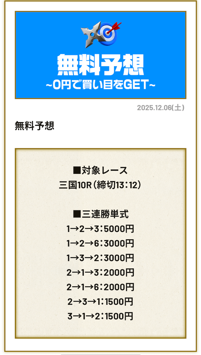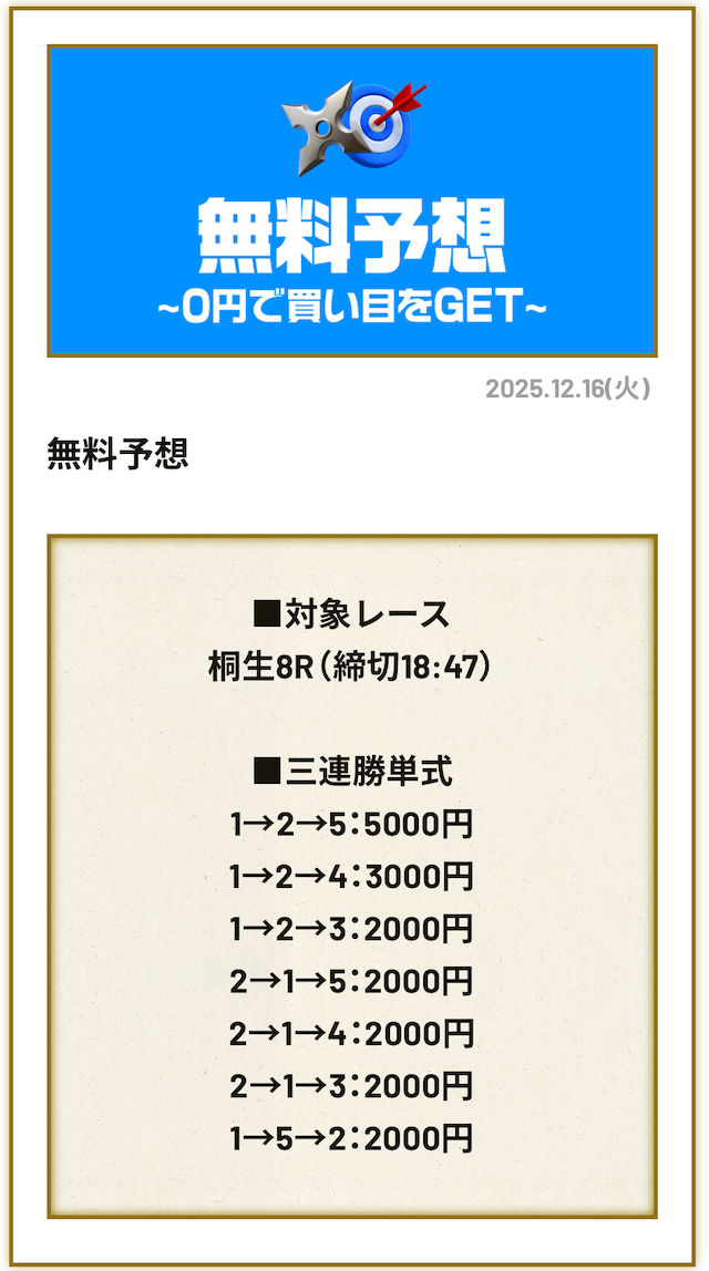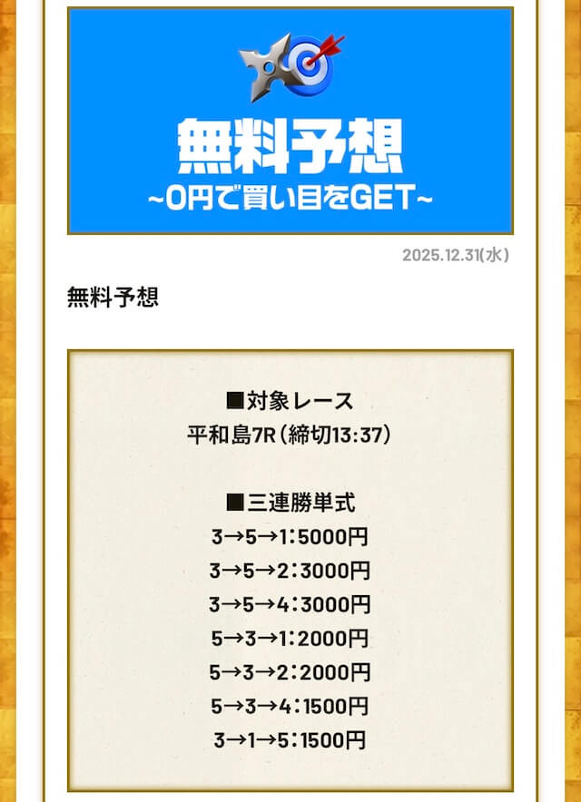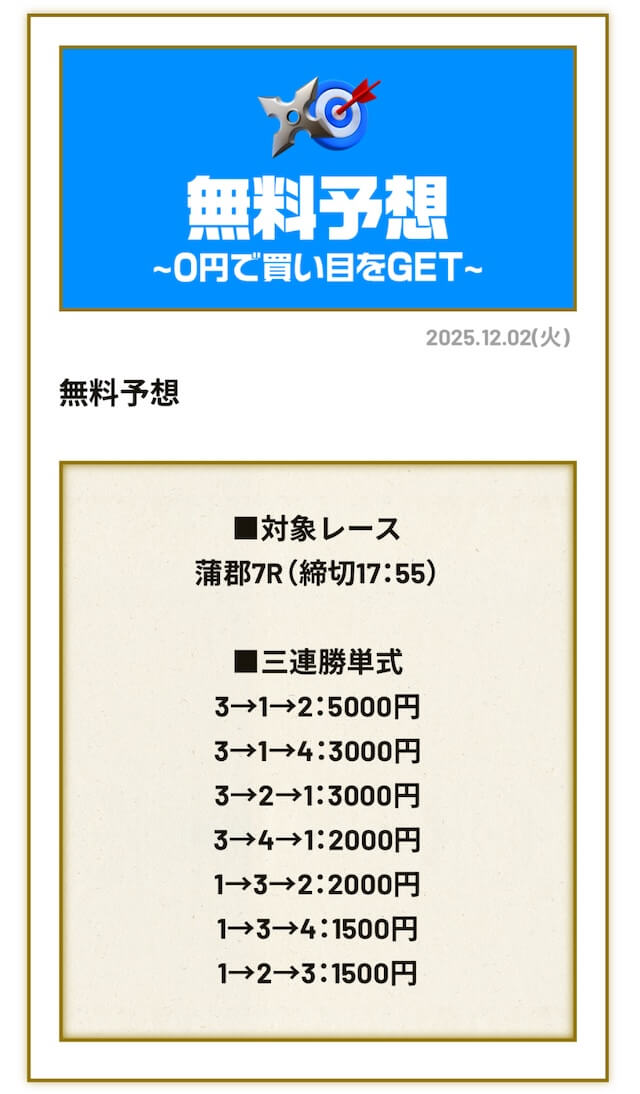 無料予想は毎日公開で投資金額は高め