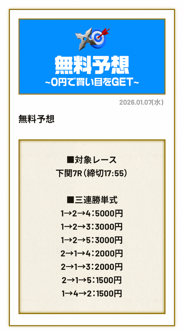 - 毎日無料予想を見たいという方