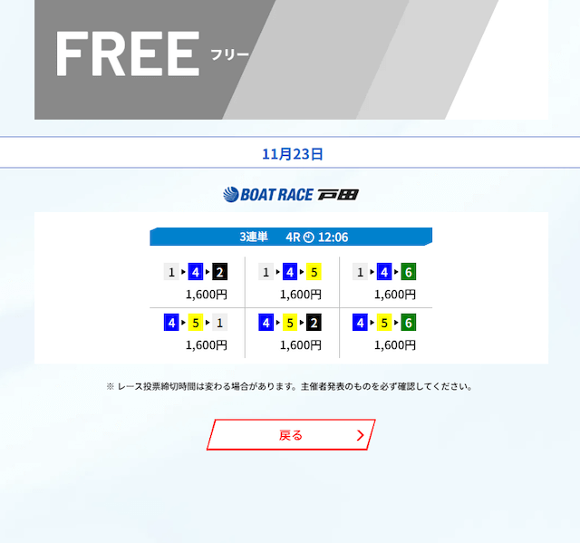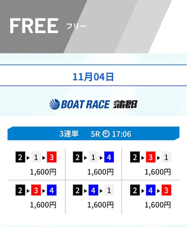 競艇ラッシュの無料予想は会員ページの下部にある「FREE」プランがそれにあたります。