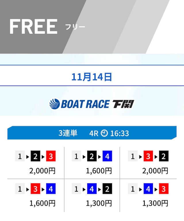 | 無料予想公開数 | 2レース/日 | 4レース/日 | 2レース/日 | 4レース/日 |