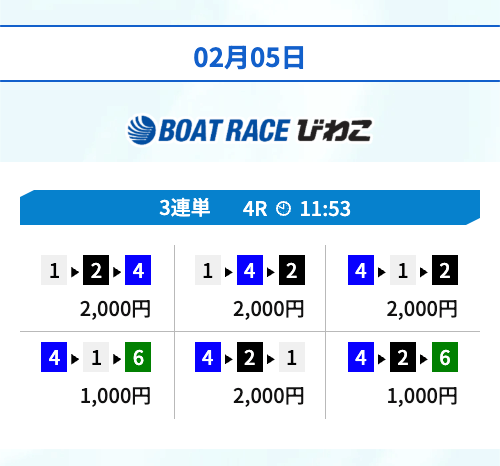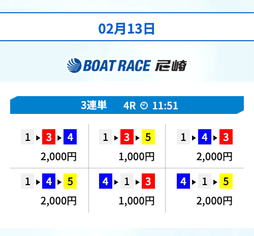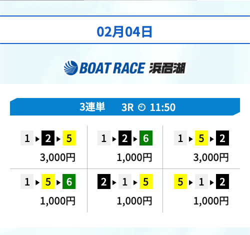 競艇で投資金額1万円で2万円の払い戻しを得ようとすると、以下のいずれかの方法で勝負をするのが一般的です。