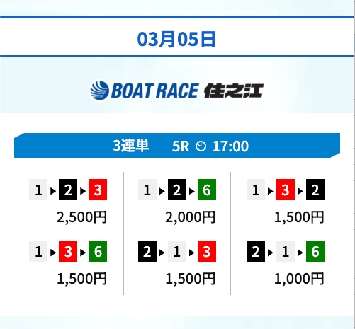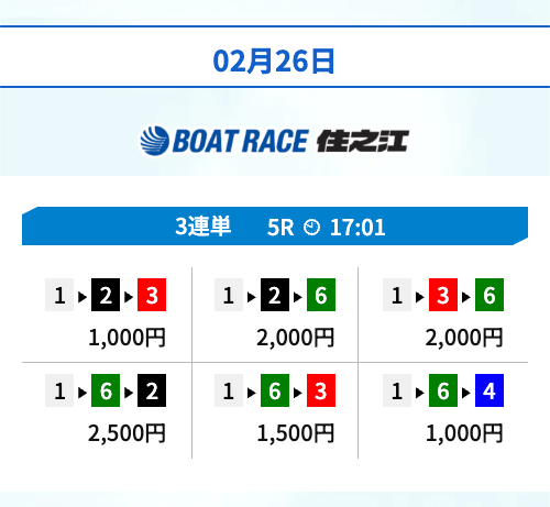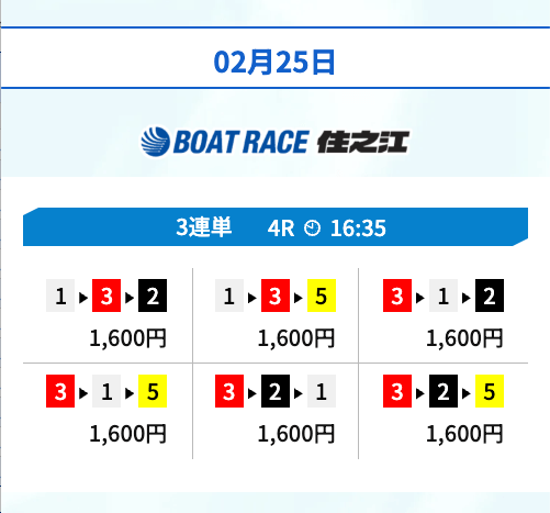 | 02月25日住之江04R | 3-1-5 | 10,000円 | 35,360円 | 354% | |