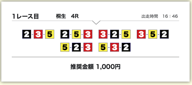 | 07月04日桐生04R | 1-3-6 | 6,000円 | 11,100円 | 185% | |