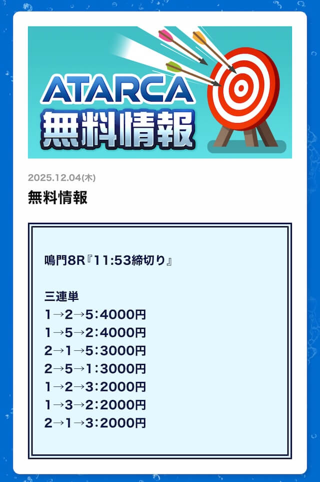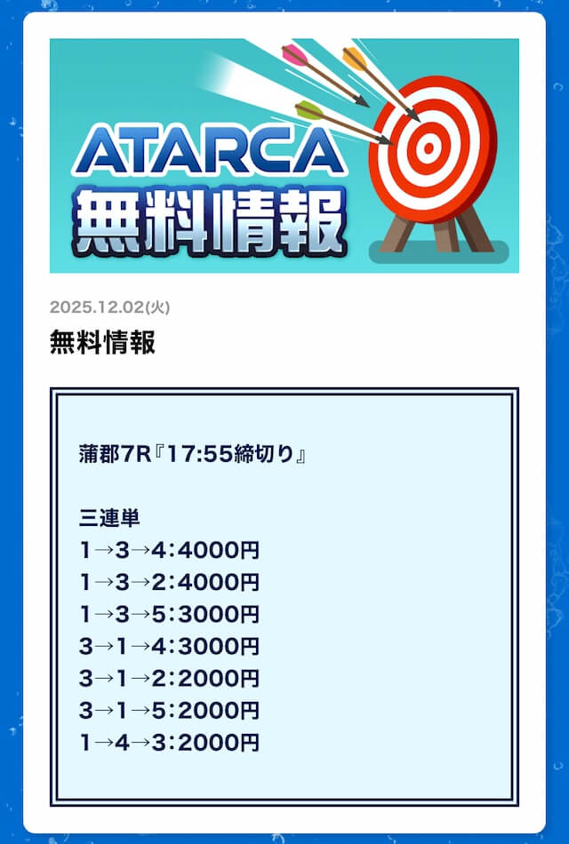 ATARCAの無料予想成績