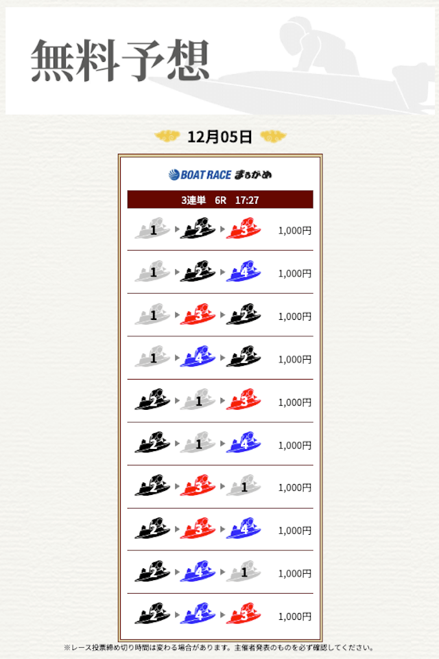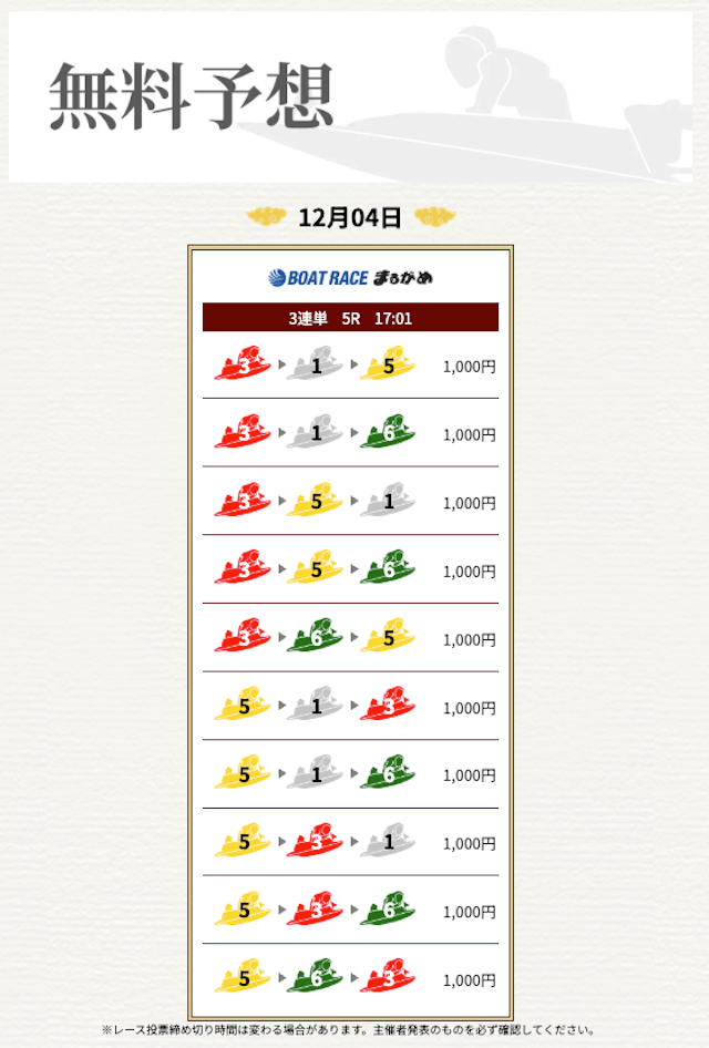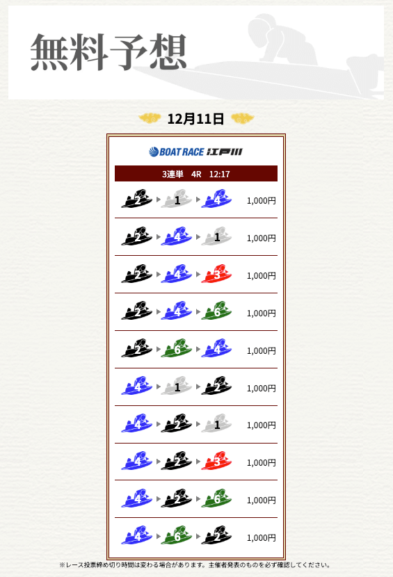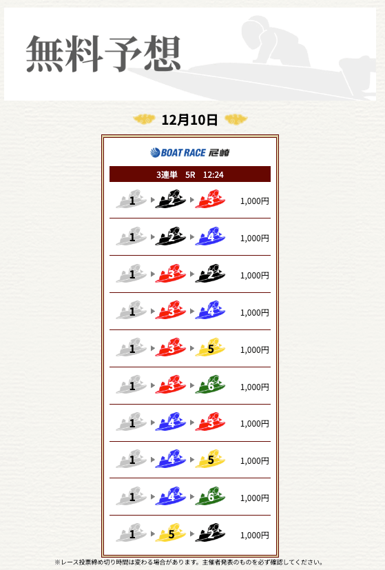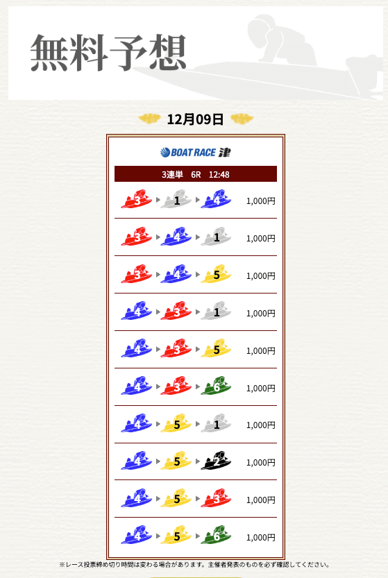 | 勝負券種 | 3連単 |
