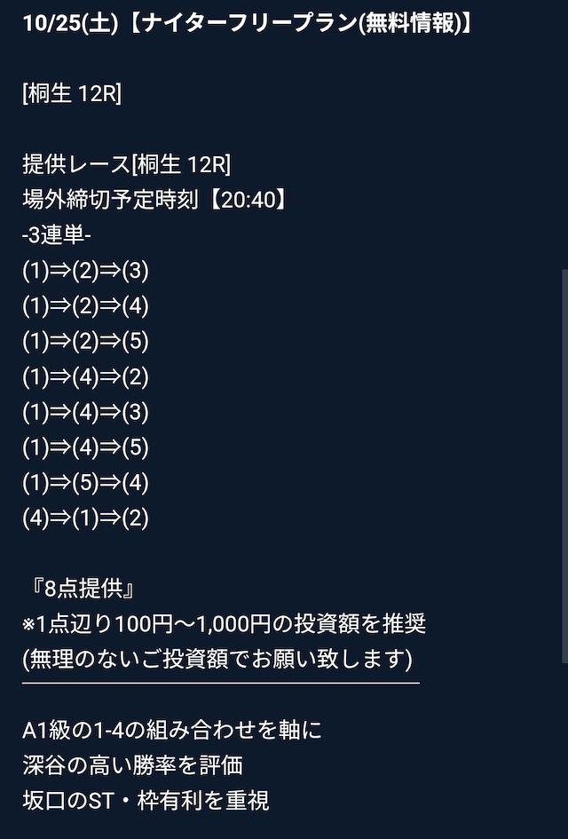 そういった情報網から得られる「注目するべきレース」の情報をLINE公式アカウント登録者限定で配信する用意があります。