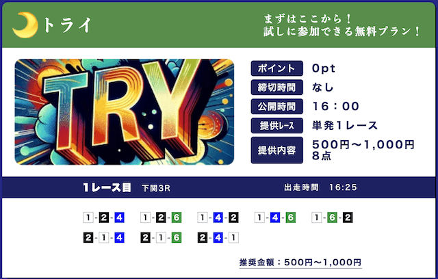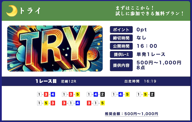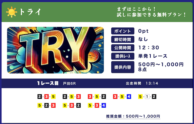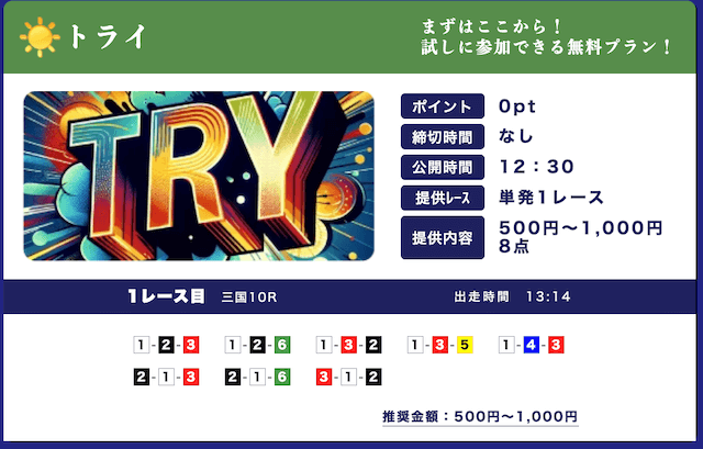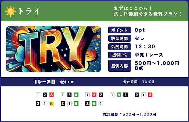 無料予想は2レース/日で365日見放題