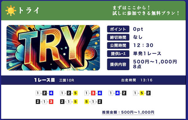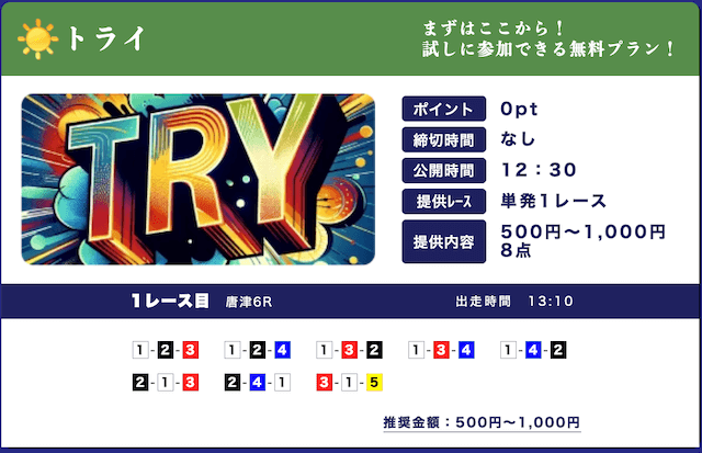 - 無料予想の推奨投資金額が500円からで試しやすい