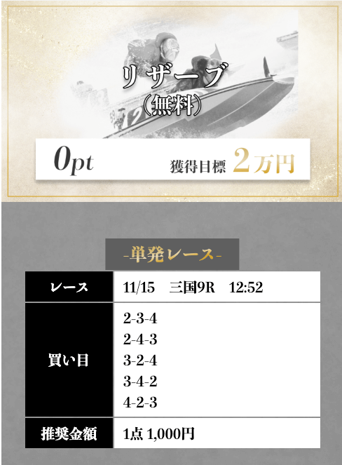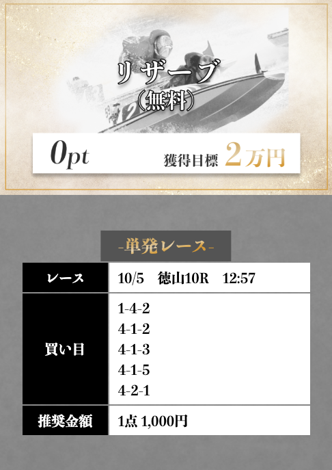 多くの予想サイトが10,000円〜20,000円で設定している中、競艇メゾンの無料予想は5,000円となっています。