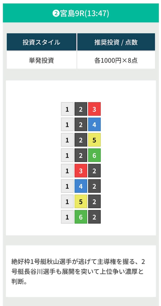 競艇メゾンが公開する無料予想の最大の特徴は投資金額の低さです。