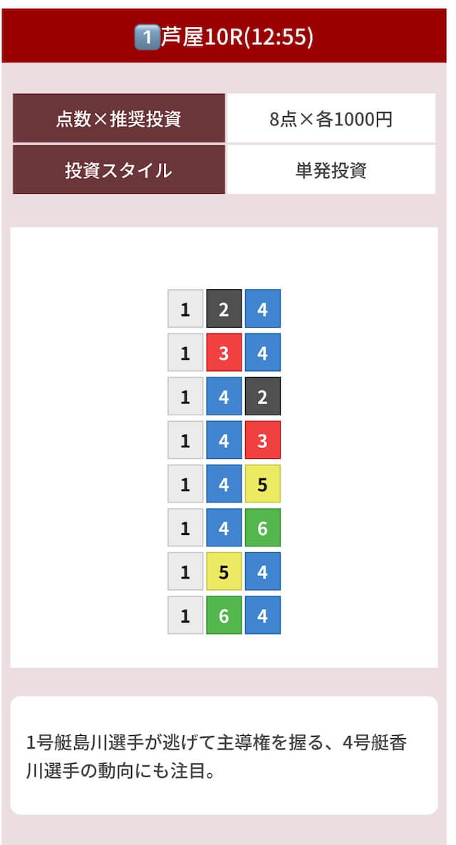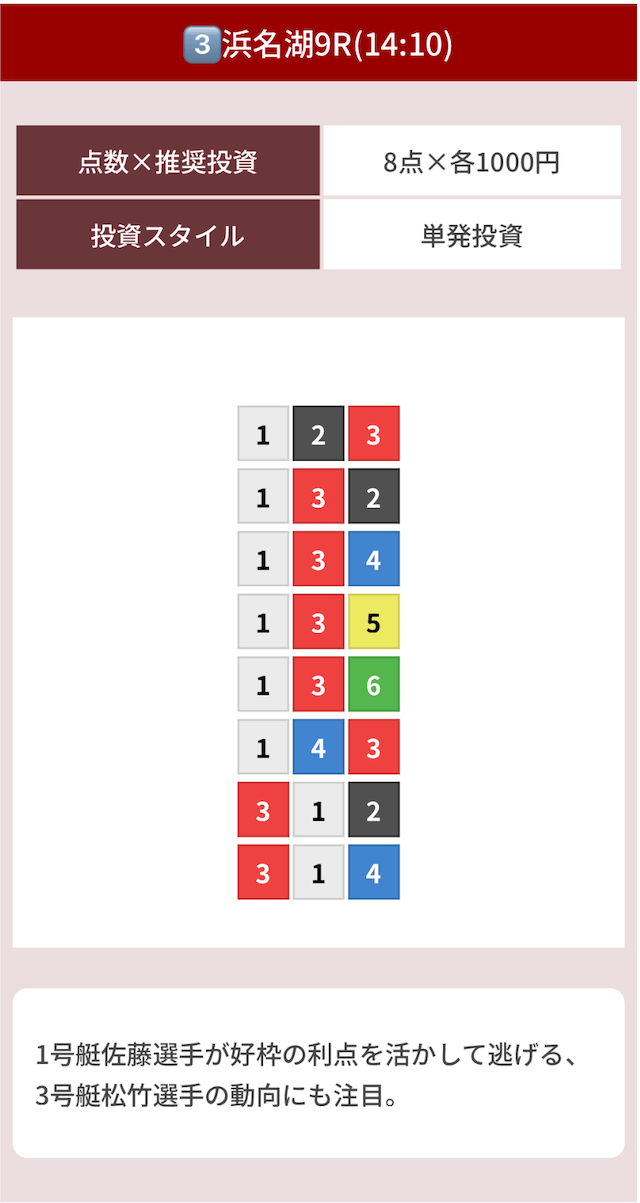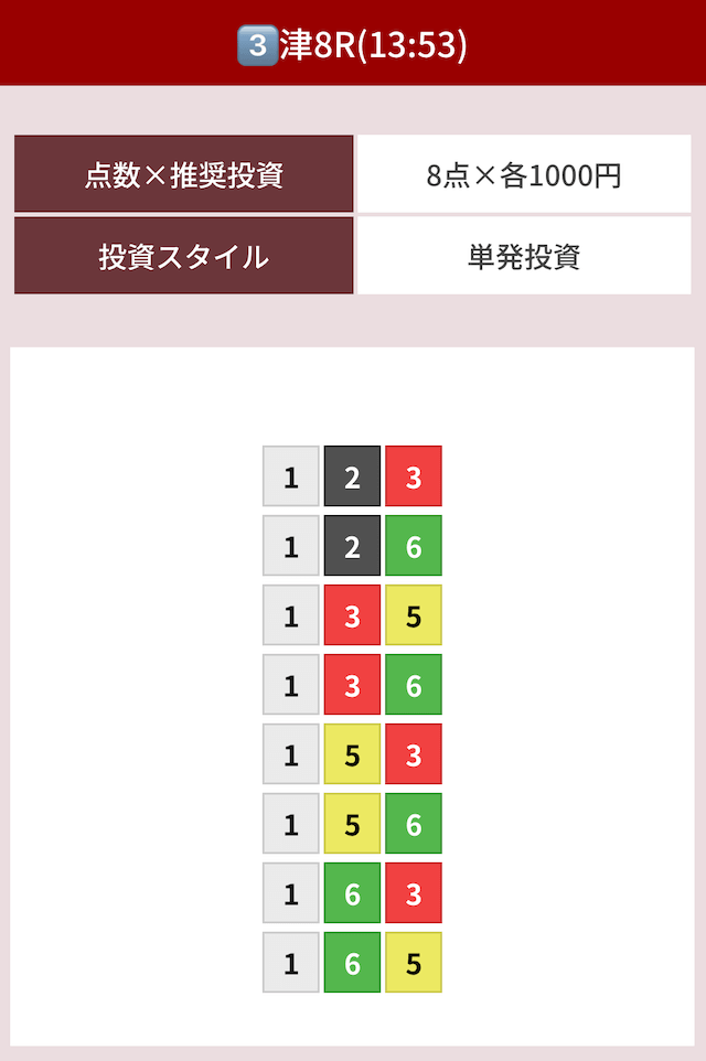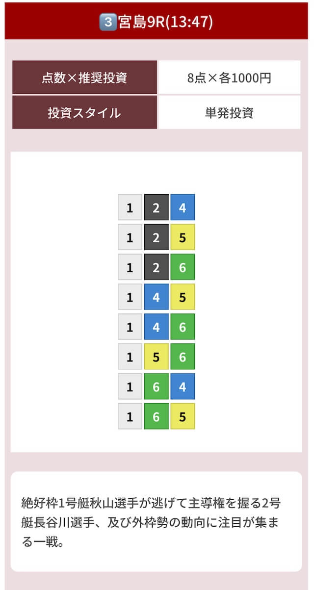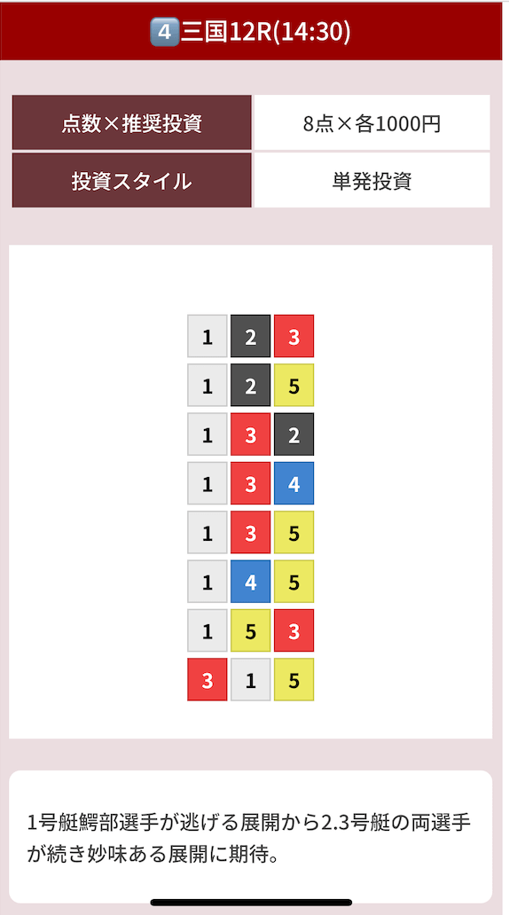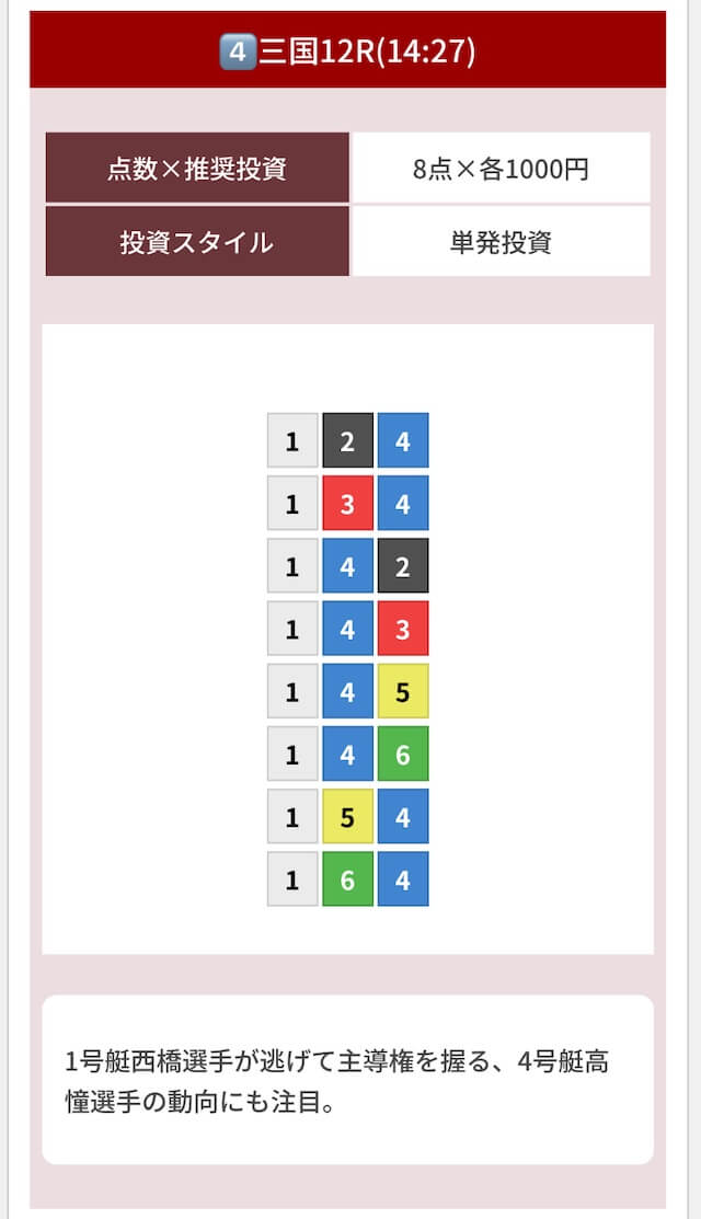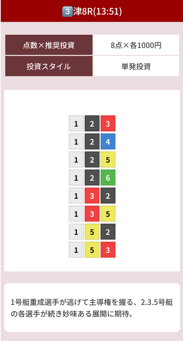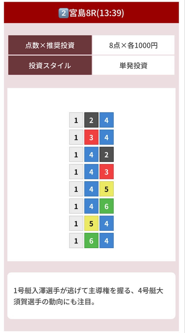 どのような買い目を公開したのか確認してみましょう。