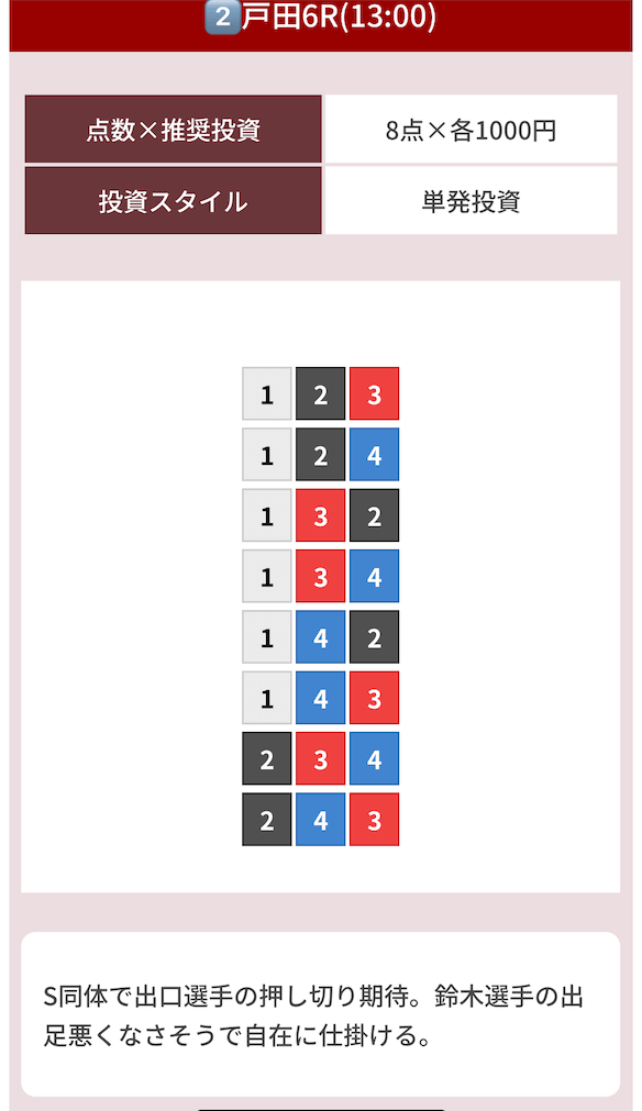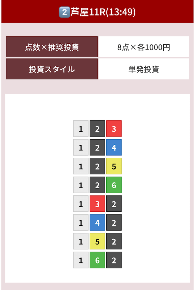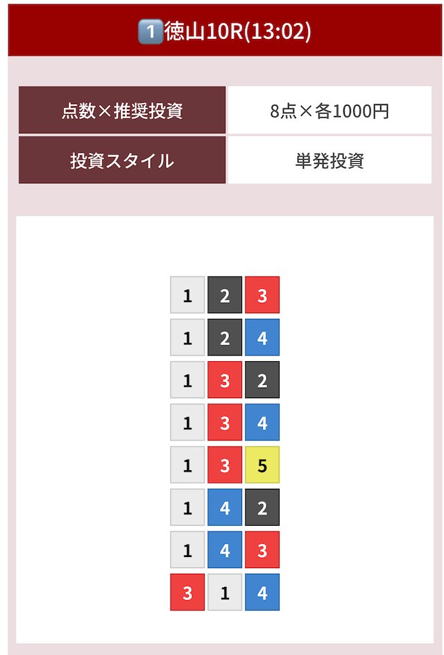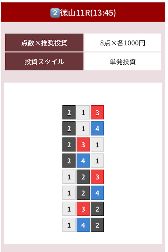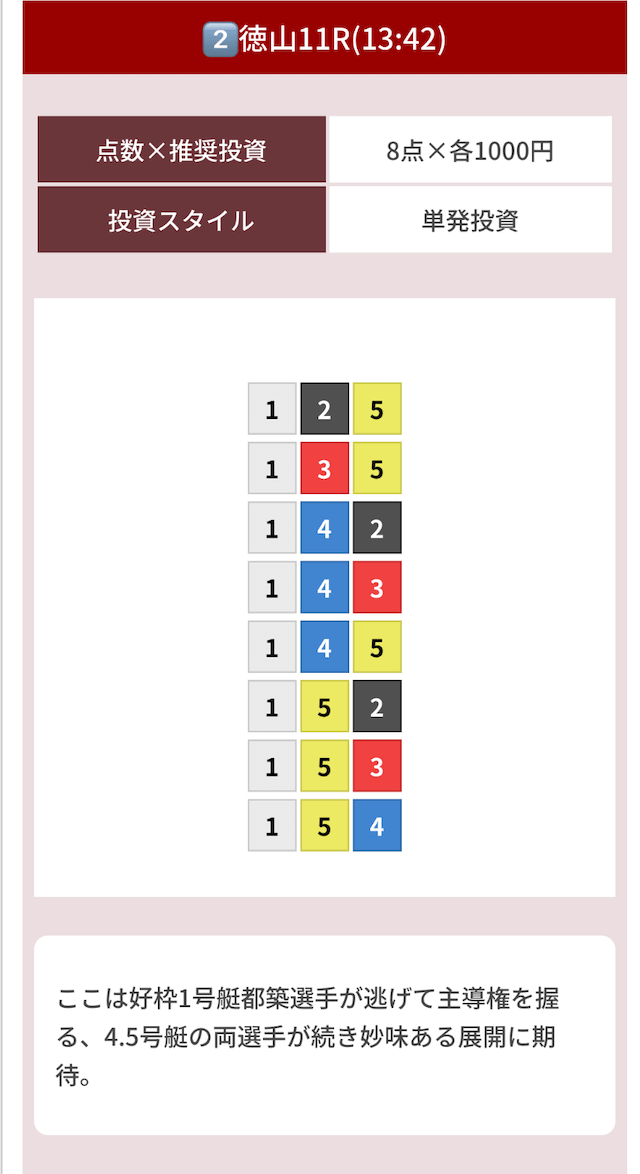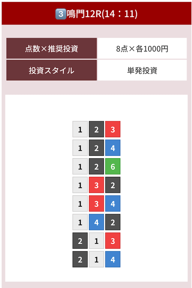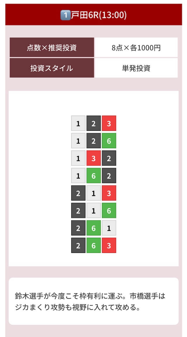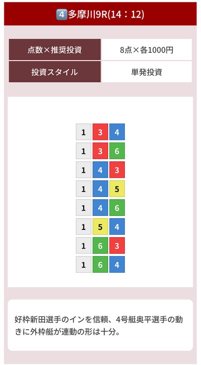 どのような買い目を公開したのか確認してみましょう。