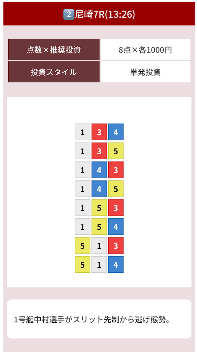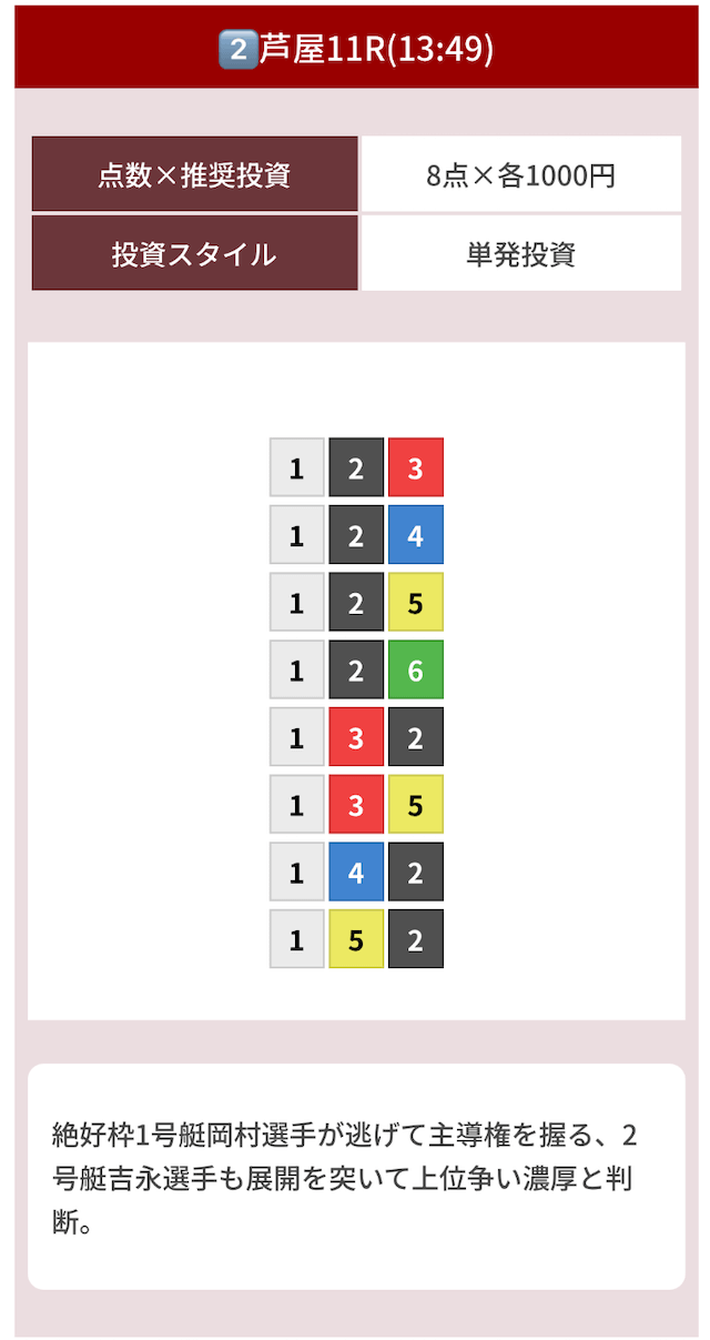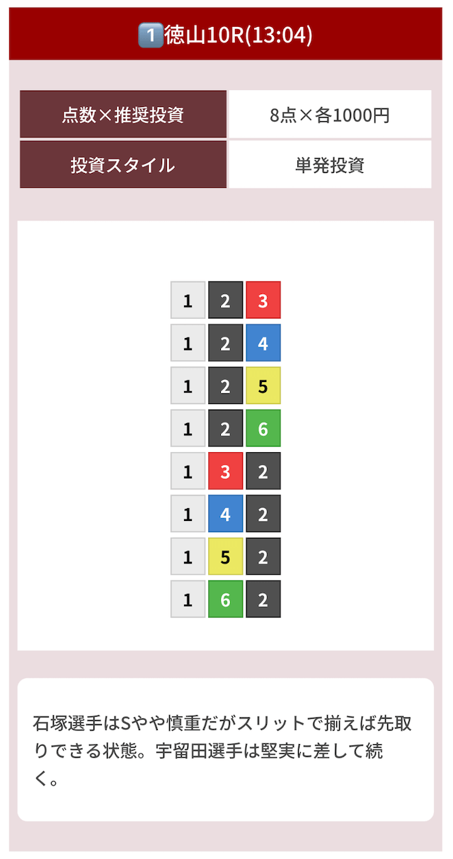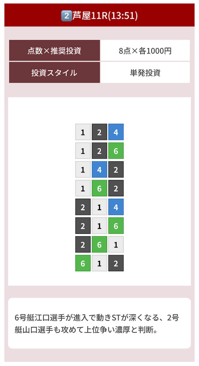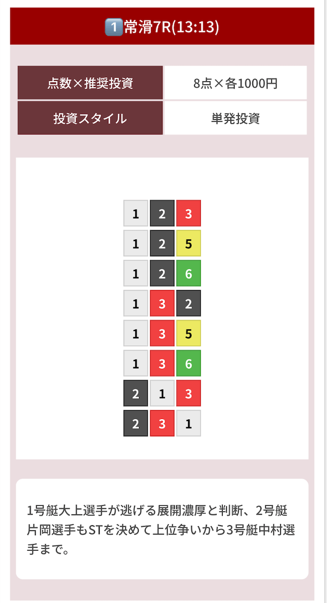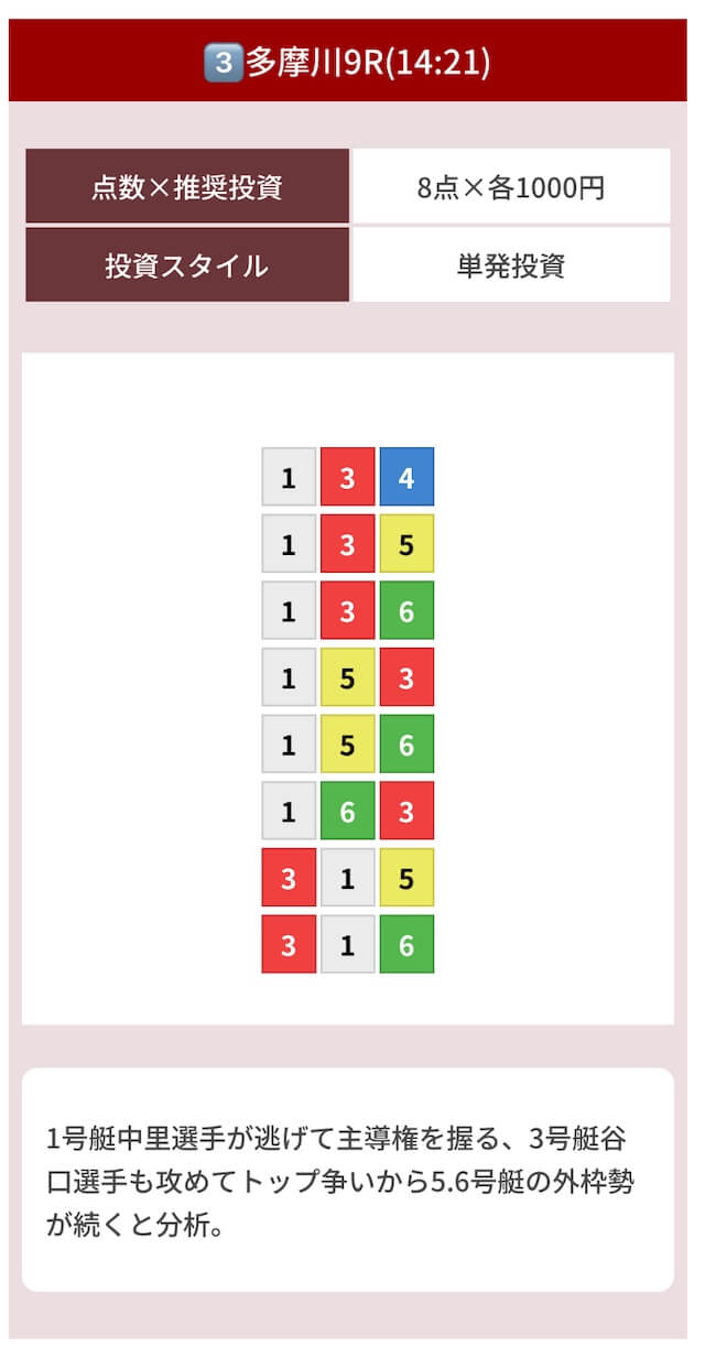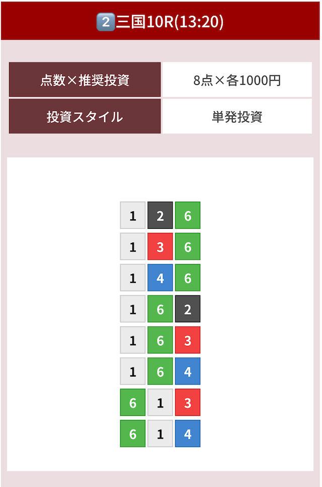 どのような買い目を公開したのか確認してみましょう。