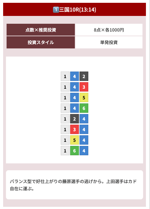 実際に私も利用していて感じたのは、穴狙いよりも堅実な予想スタイルが多く、当てにいくという姿勢が一貫しているところです。
