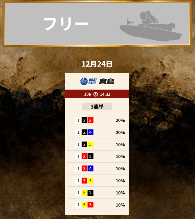 - 1号艇が軸となるレースでの無料予想が公開された場合