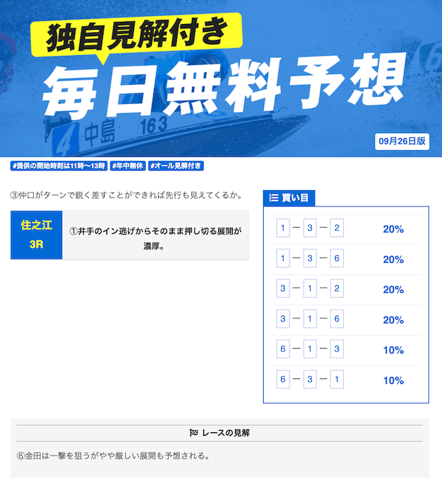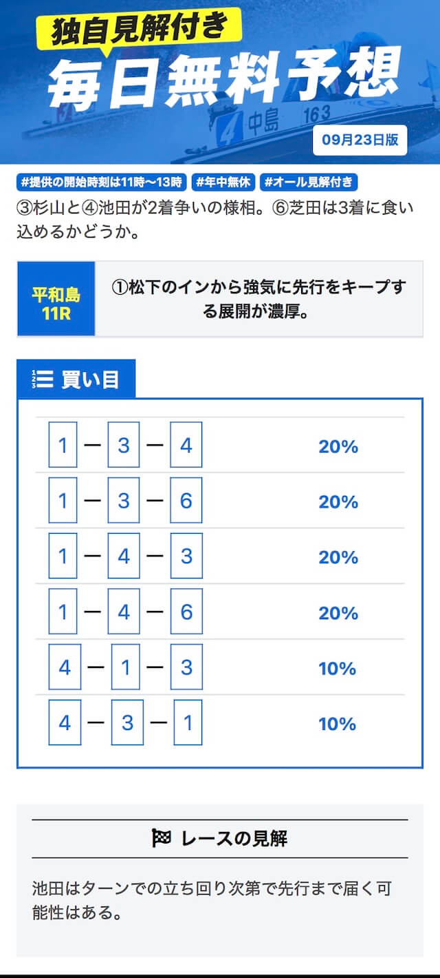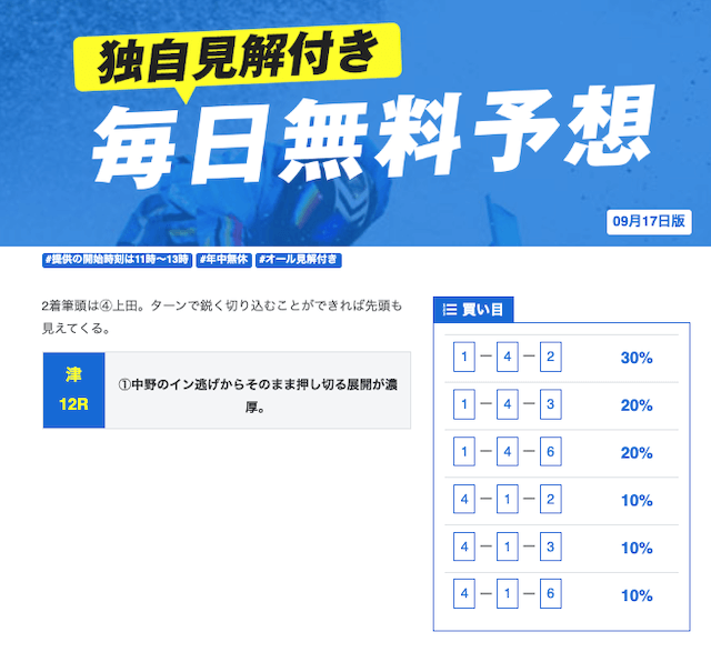 他の予想サイトと比べたら的中率抜群って印象。トリガミや利益が少ないってこともないから良いとは思うんだけど、競艇予想に参加する時間取れない俺には回収率重視の予想サイトの方が合ってるかな。登録特典だけで参加できる有料プランがもっと増えたら話はまた変わってくるとは思う。