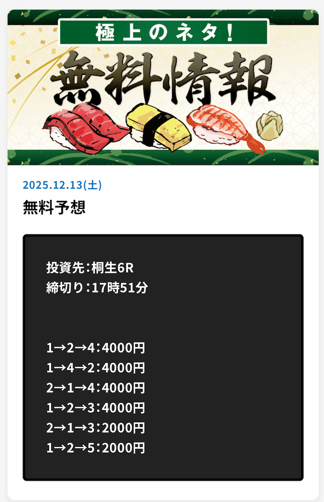 無料予想でハイリターンを実現しているため、なるべく低リスクで多く稼ぎたい方におすすめ!