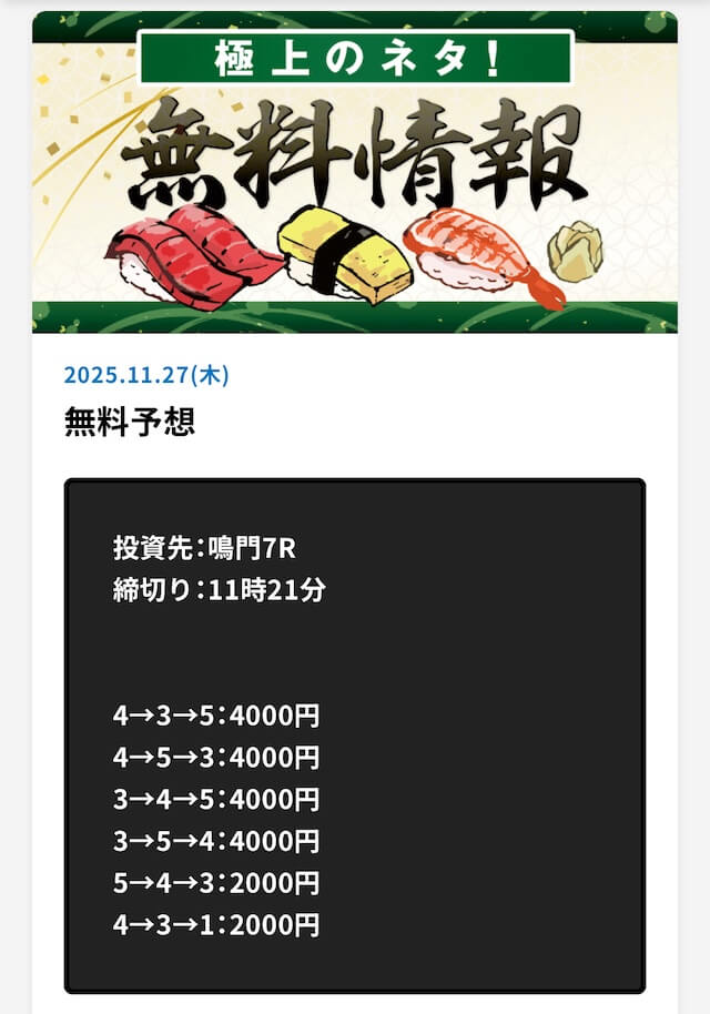 そういった情報網から得られる「注目するべきレース」の情報をLINE公式アカウント登録者限定で配信する用意があります。
