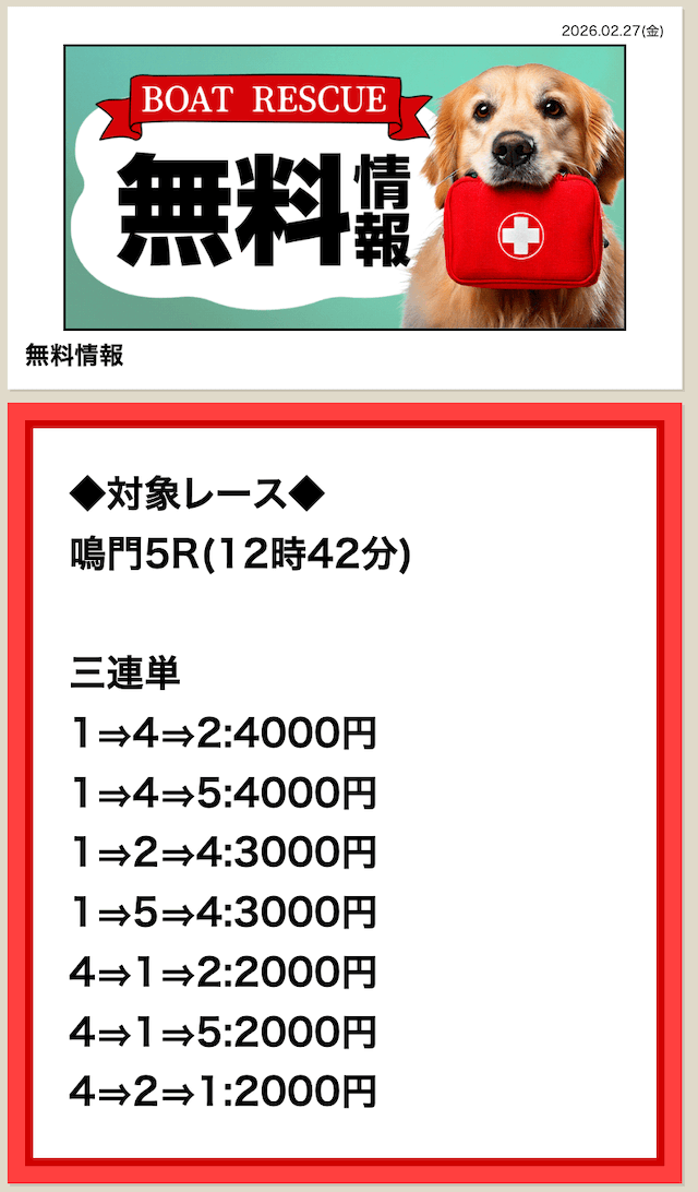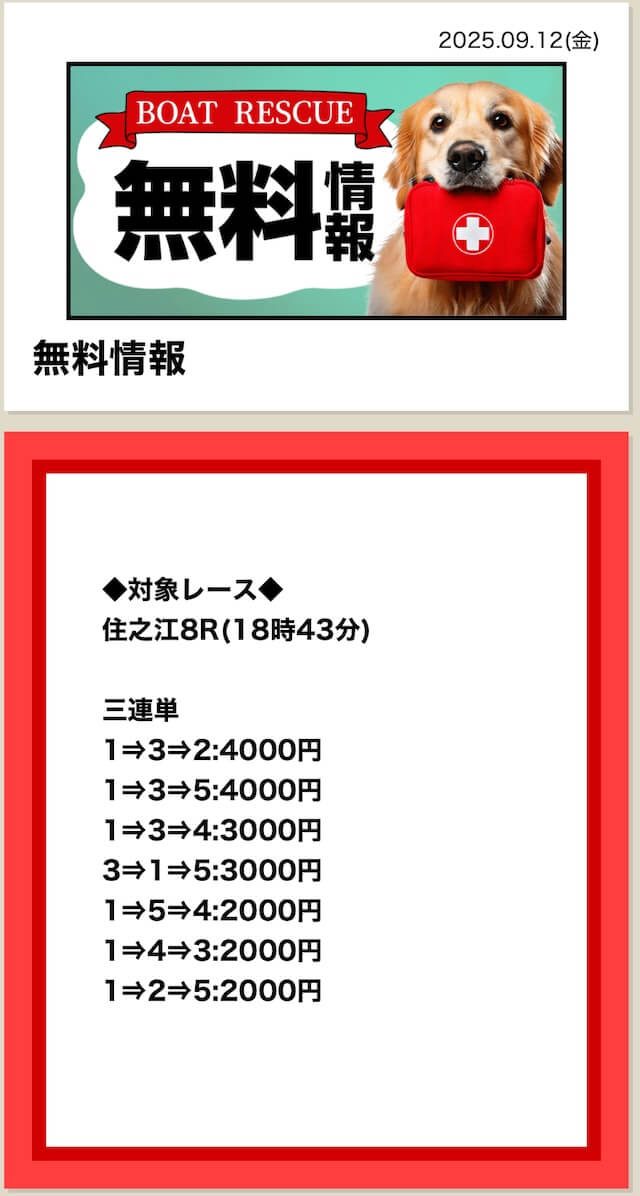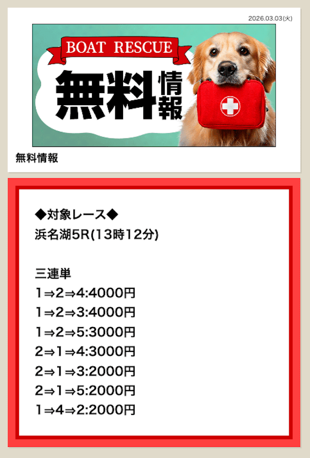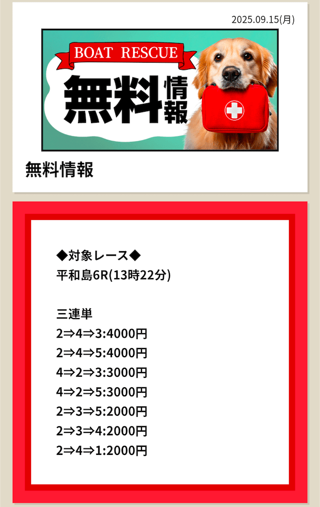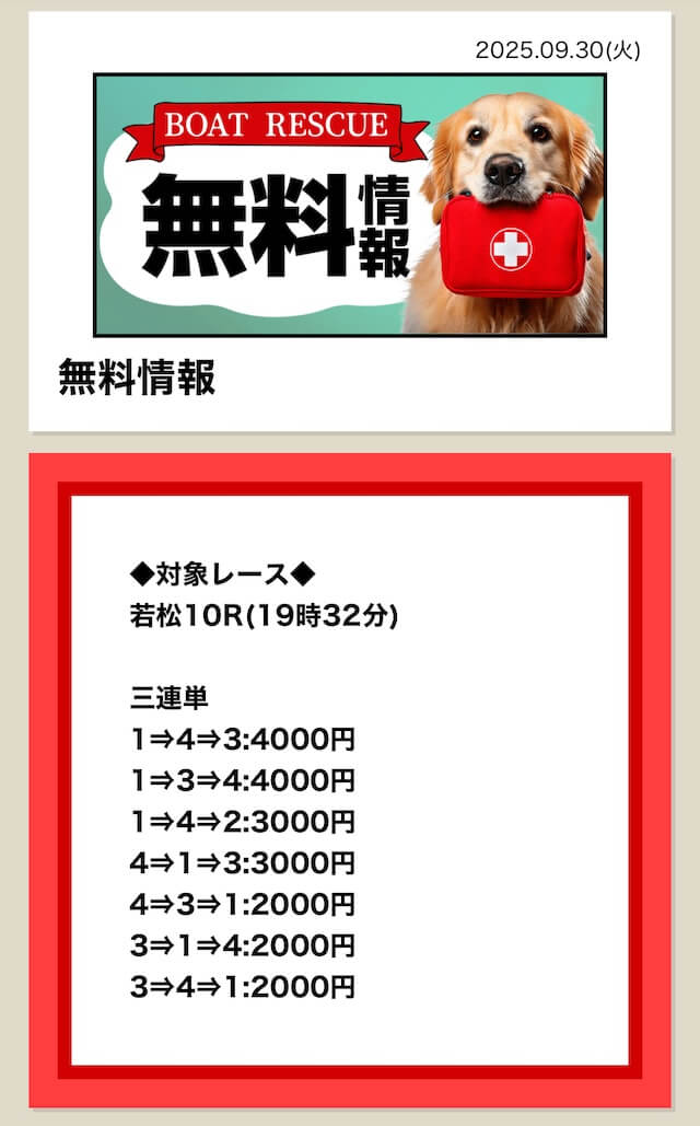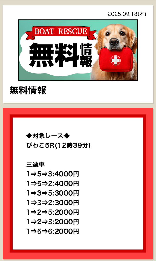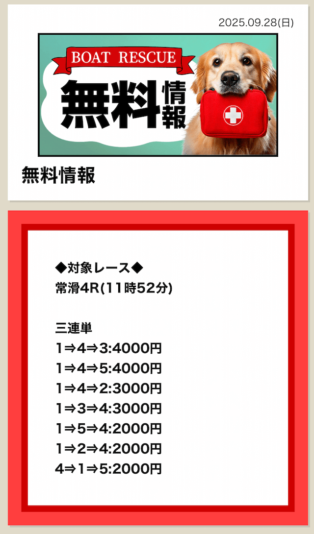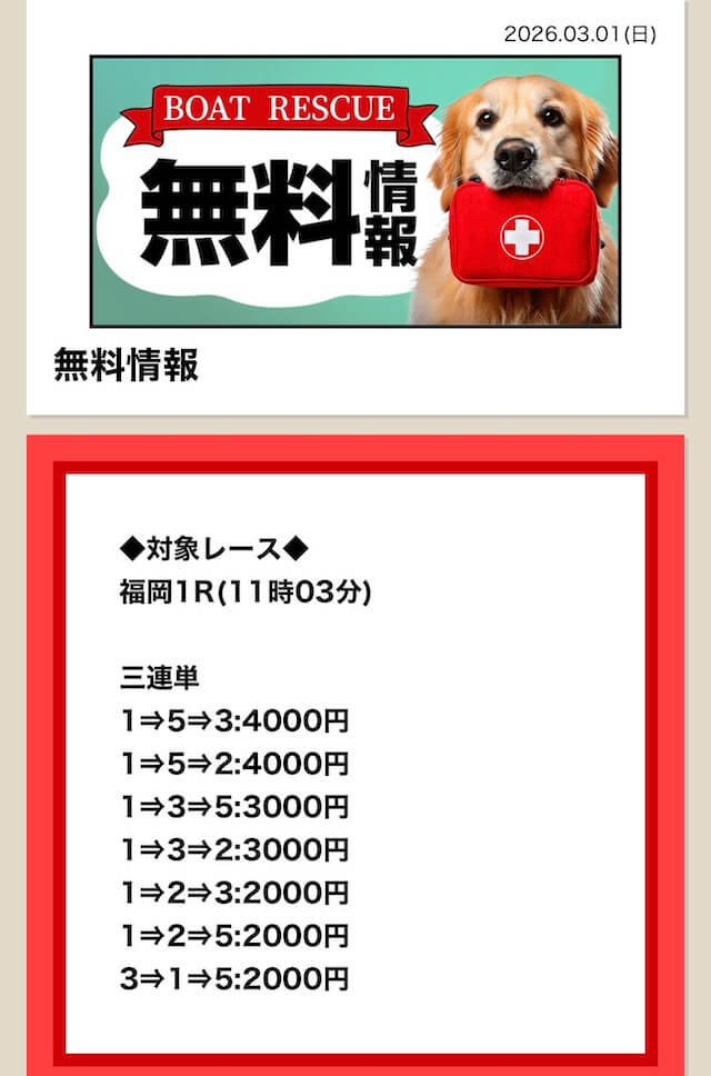 ボートレスキューを利用してまだ4回ですが、3度の的中です。