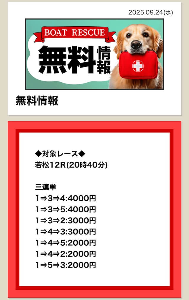 そのような中、ボートレスキューは3号艇を完全に排除した買い目を公開してきました。
