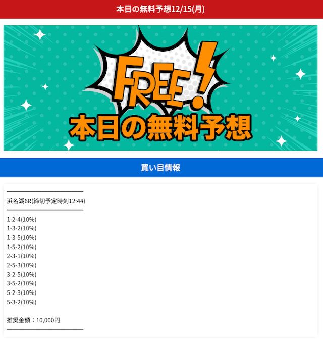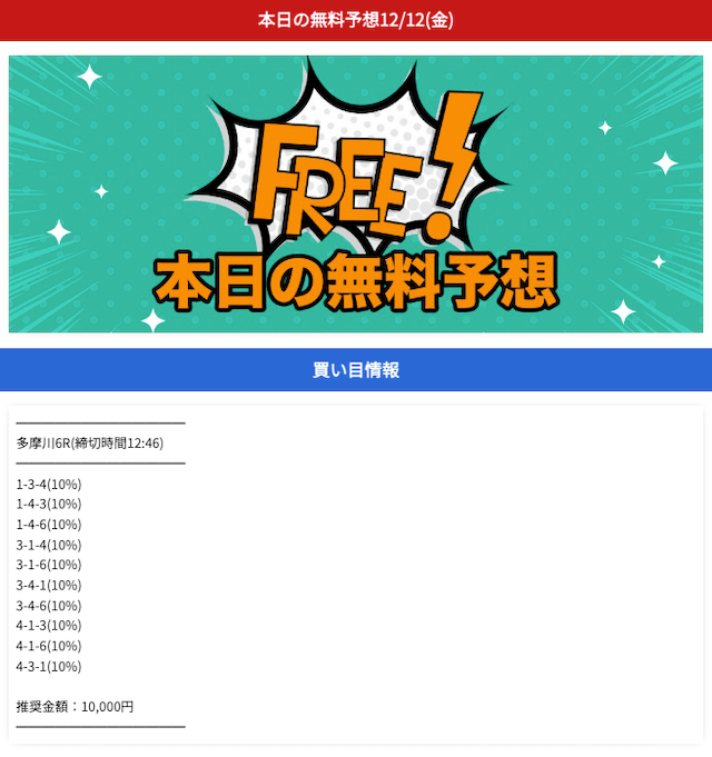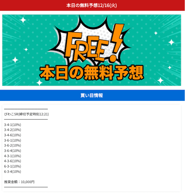 - 無料予想は毎日公開で閲覧方法は簡単
