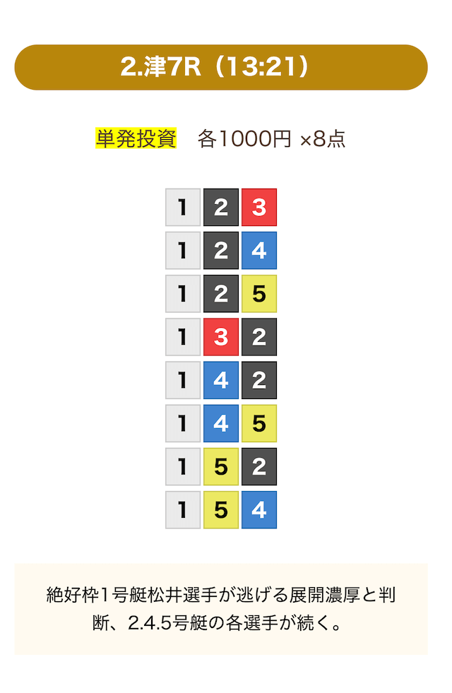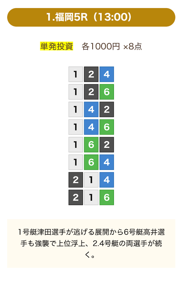 競艇ストロング当たりすぎじゃないか?(笑)さっき8回目の参加で初不的中。これまで7連勝で合計13万円も稼げたわ。しかも毎日4レース公開だから、参加のチャンスが多いのもいいね。