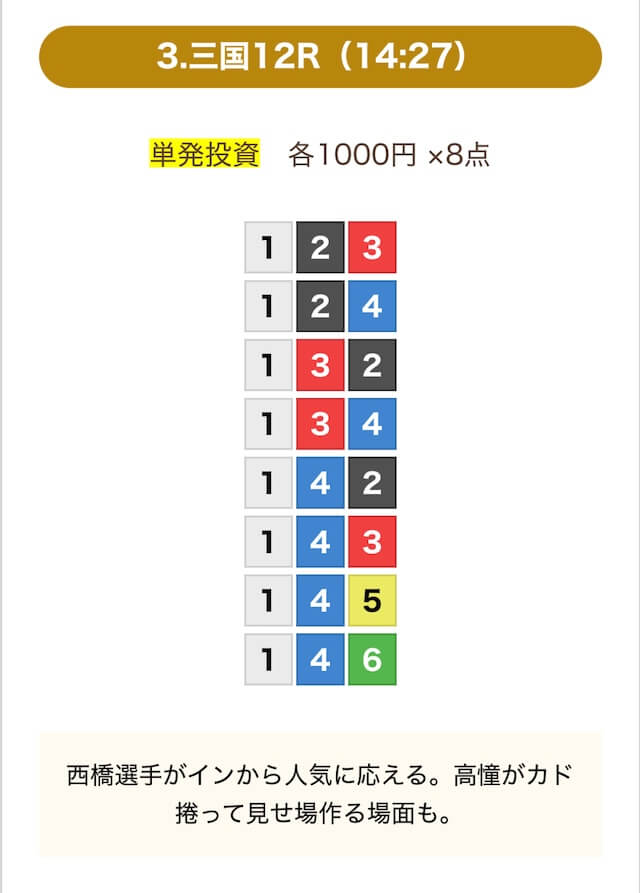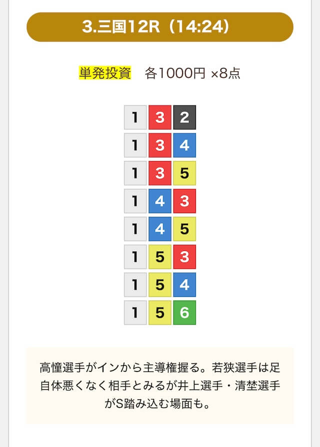 | 11月12日三国12R | 1-4-6 | 8,000円 | 25,200円 | 315% | |