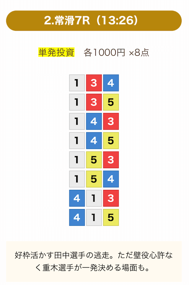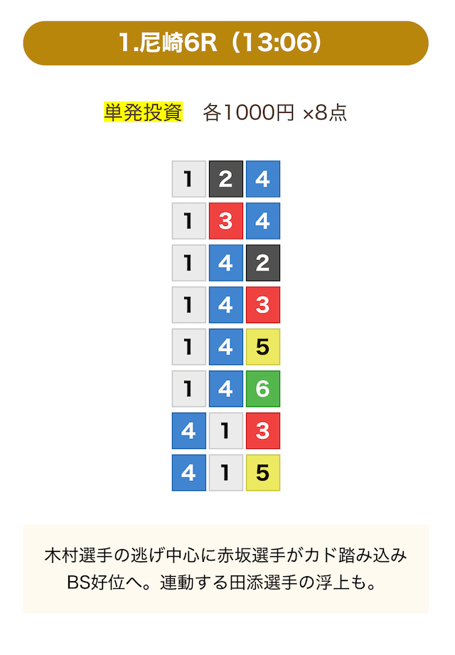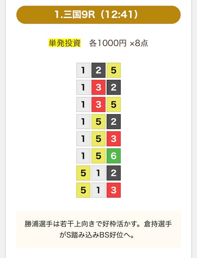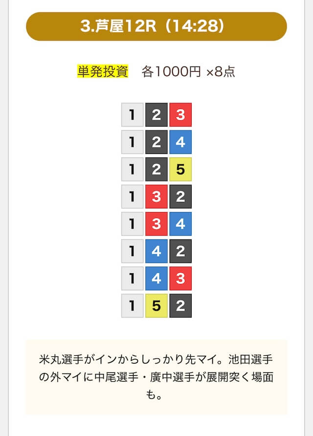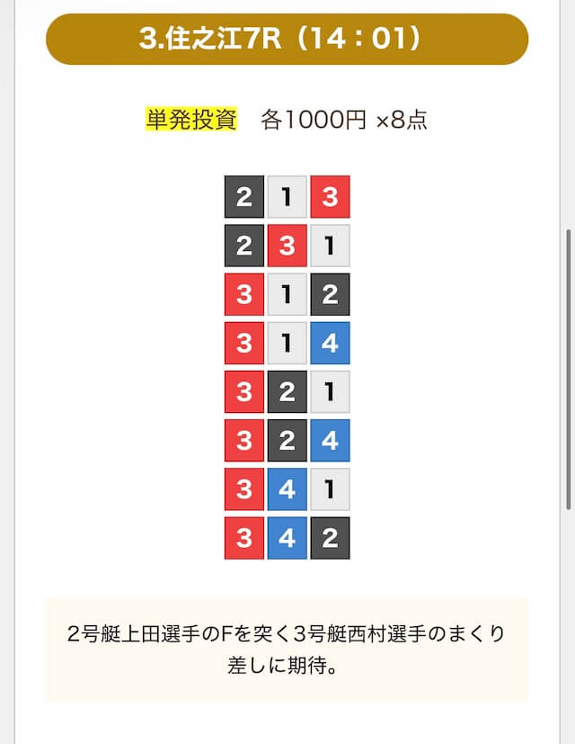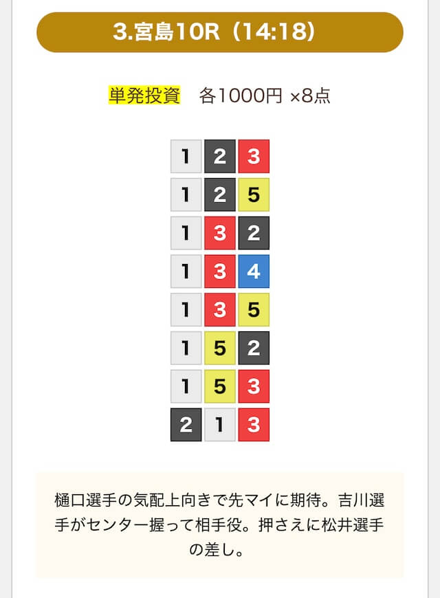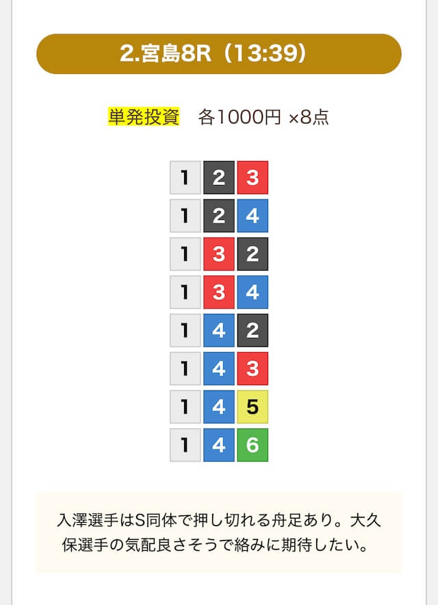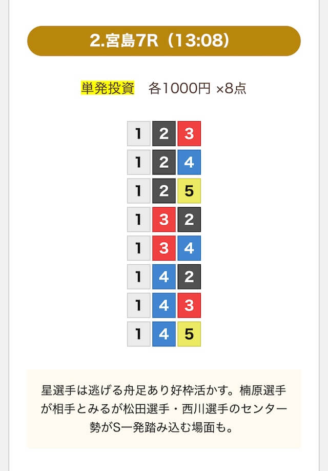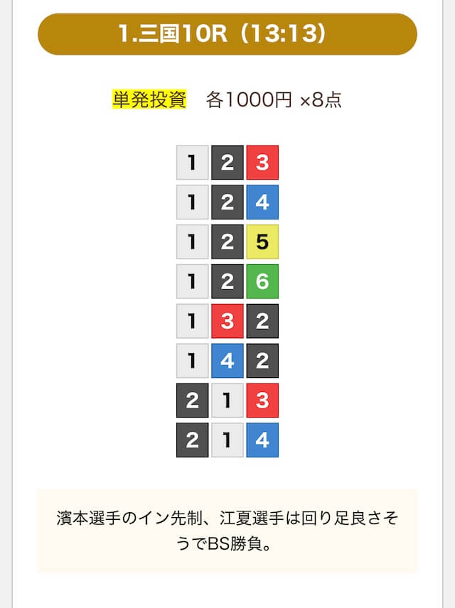 無料予想も4レース分あるんで良いとは思うんですけど結局4レース参加したら舟券代もそこそこ増えるのでそれなら有料やろうと思って参加しました。