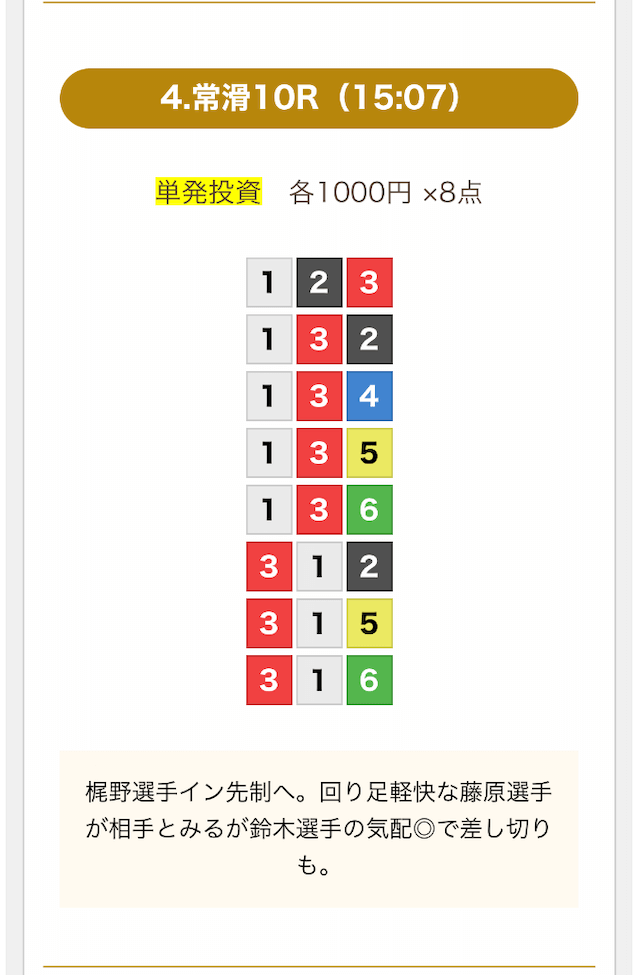 | 03月28日常滑06R | 1-2-4 | 8,000円 | 22,400円 | 280% | |