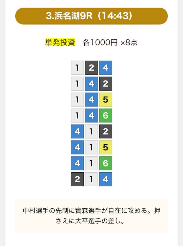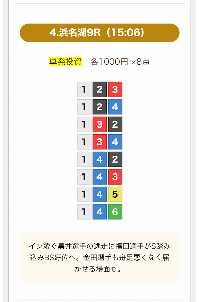 | 10月01日浜名湖04R | 1-2-4 | 8,000円 | 24,300円 | 304% | |