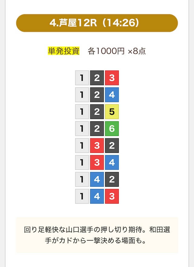 - 1日4回無料予想が公開されるため、稼げるチャンスが多い。