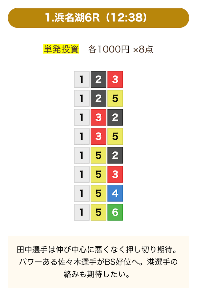| 06月16日浜名湖02R | 1-3-2 | 8,000円 | 9,200円 | 115% | |