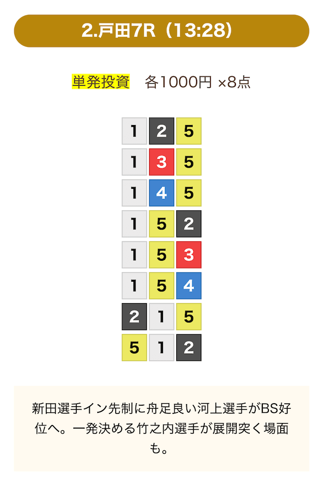 先述したように競艇ストロングはセオリー通り賭けることが多い競艇予想サイト。