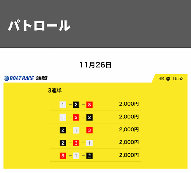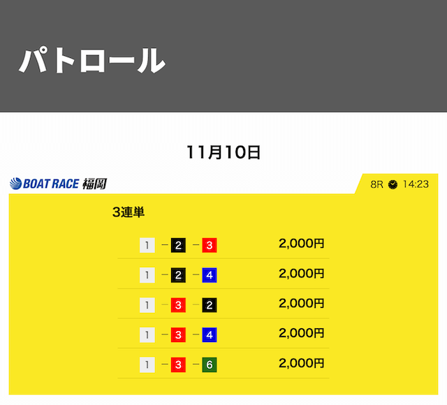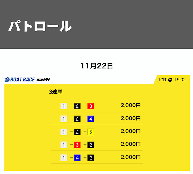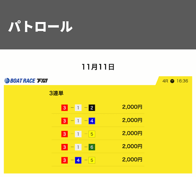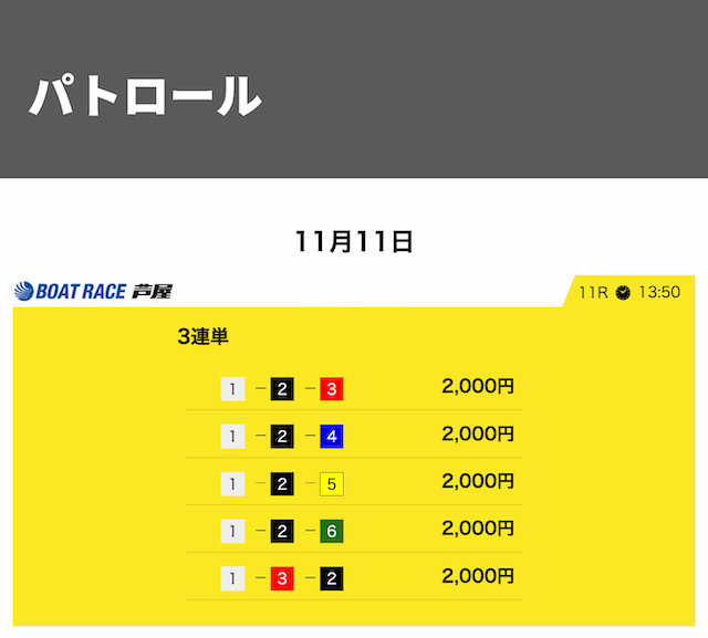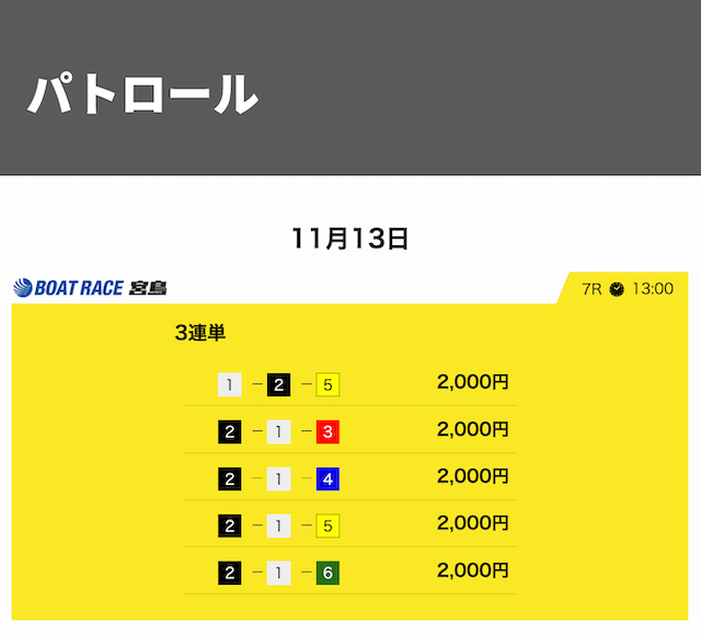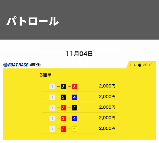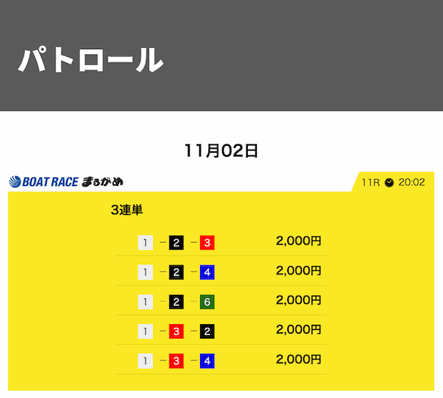 投資金額は2,000円であることから、払戻は60,000円超えとかなり満足のいく結果です。