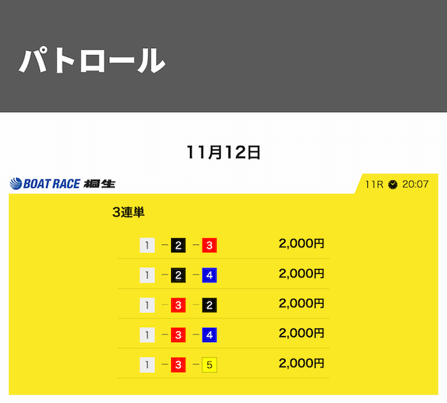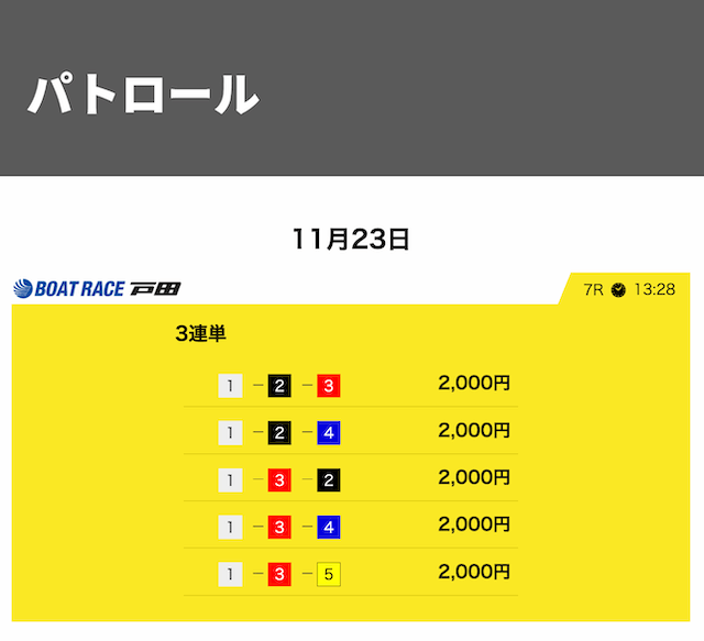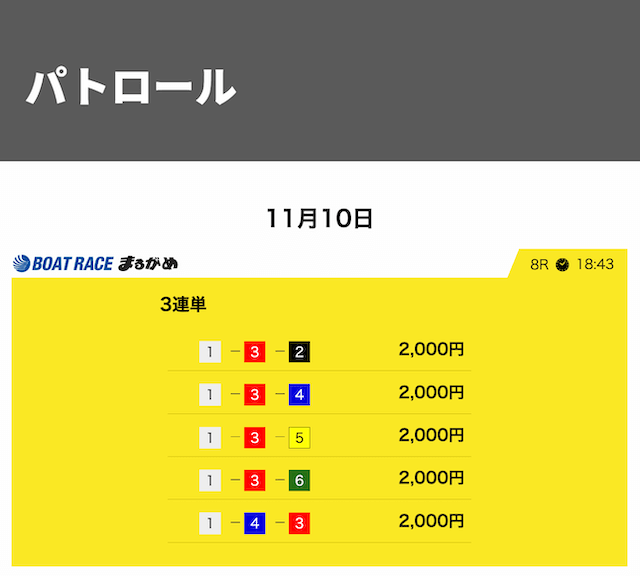 それを考慮してか、競艇サバイバーも5号艇を完全に切った買い目を公開しました。