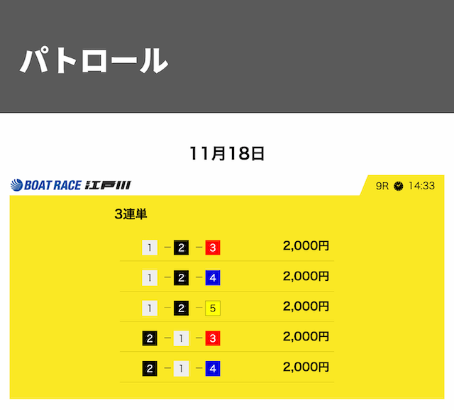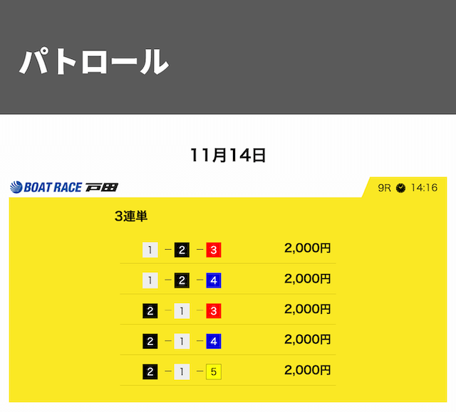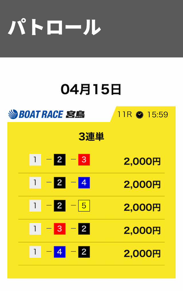 買い目点数は基本5点となっており、かなり強気の予想だと言えますね。