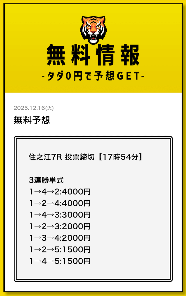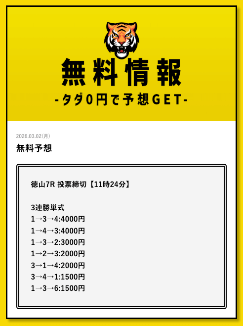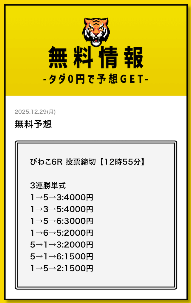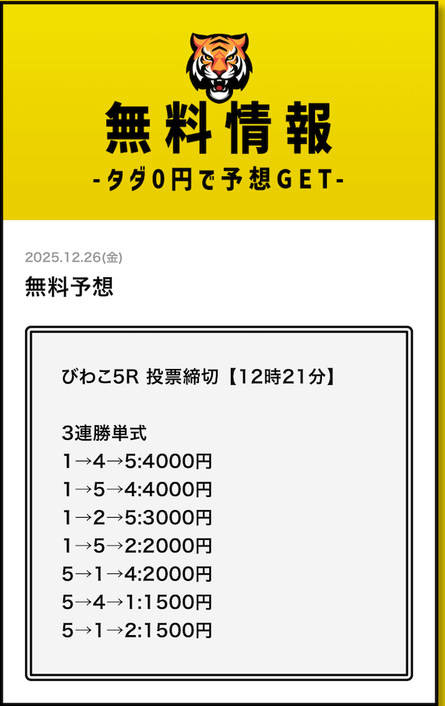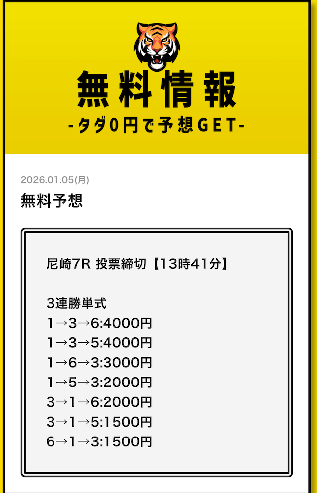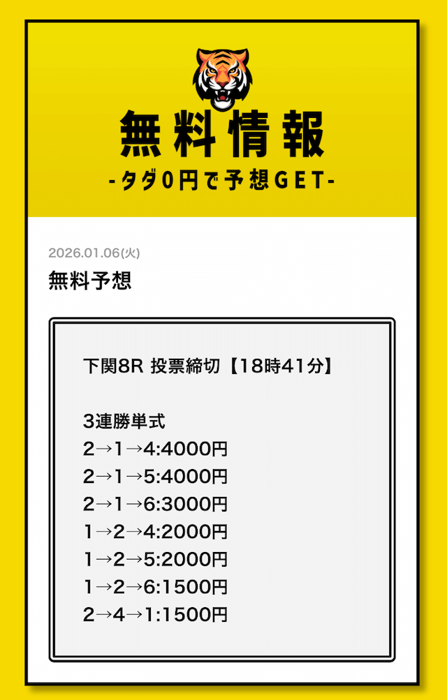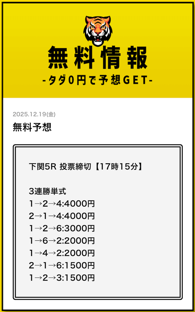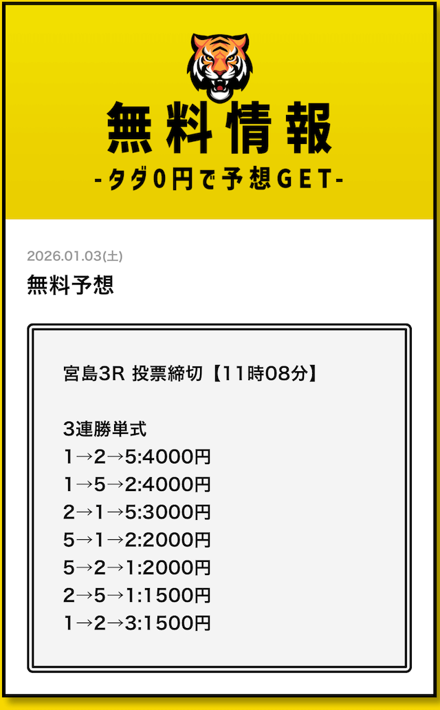ひとまずタイガーボートの無料予想を利用してみてはいかがでしょうか?