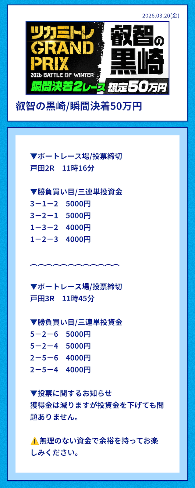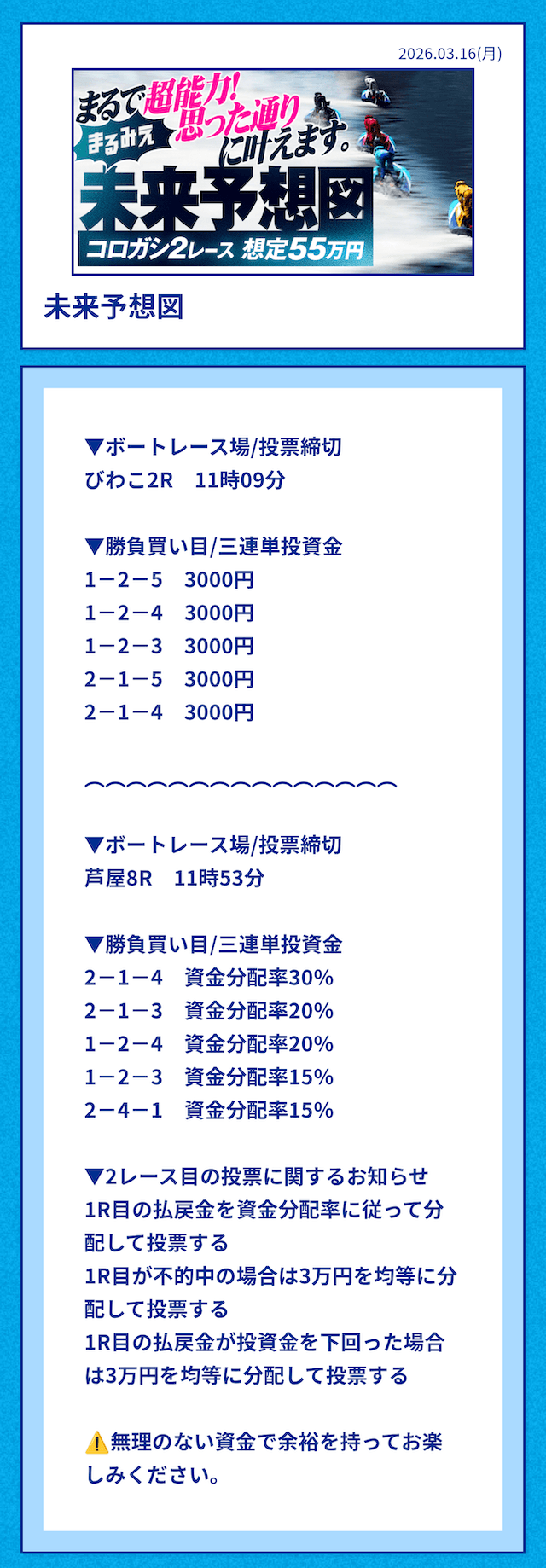 どうやらこれがかなりの自信があるようで、舟券の新常識を作り出していると自負するほど。