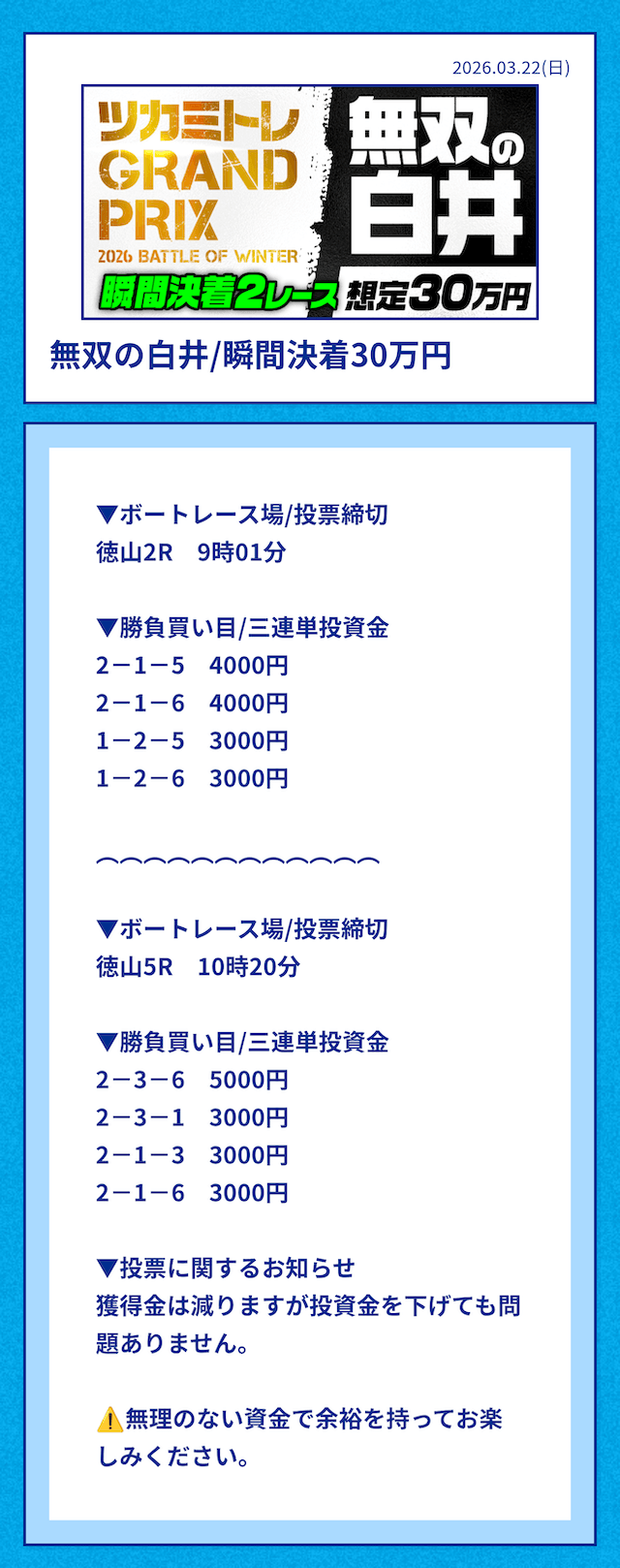 そういった情報網から得られる「注目するべきレース」の情報をLINE公式アカウント登録者限定で配信する用意があります。