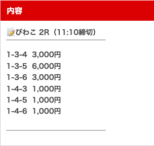 | 商品の引き渡し時期 | 商品により個別に設定しており、レース開催30分前までにメール等でご案内。 |