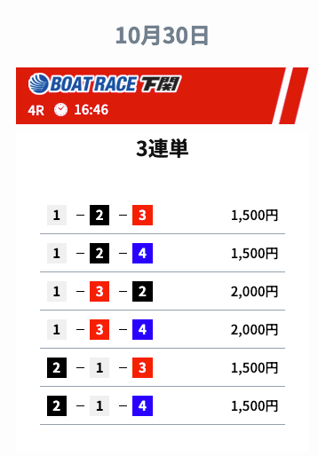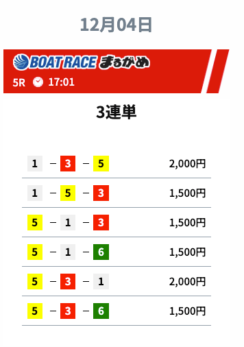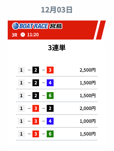 | 宮島 | 6/6 | 100% | +52,600円 |